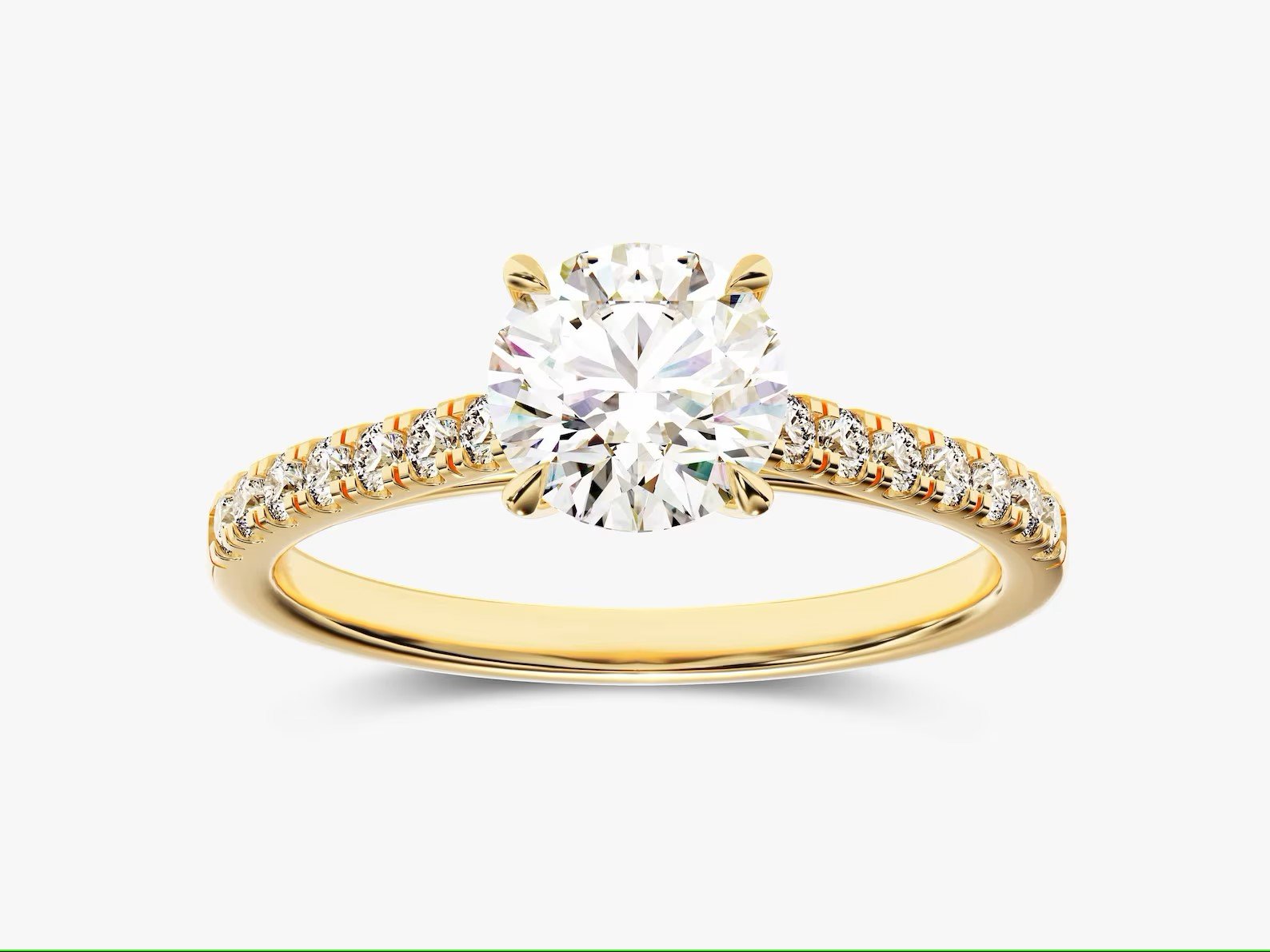 14K Solid Gold Round Diamond Engagement Ring with Pave Set Side stones