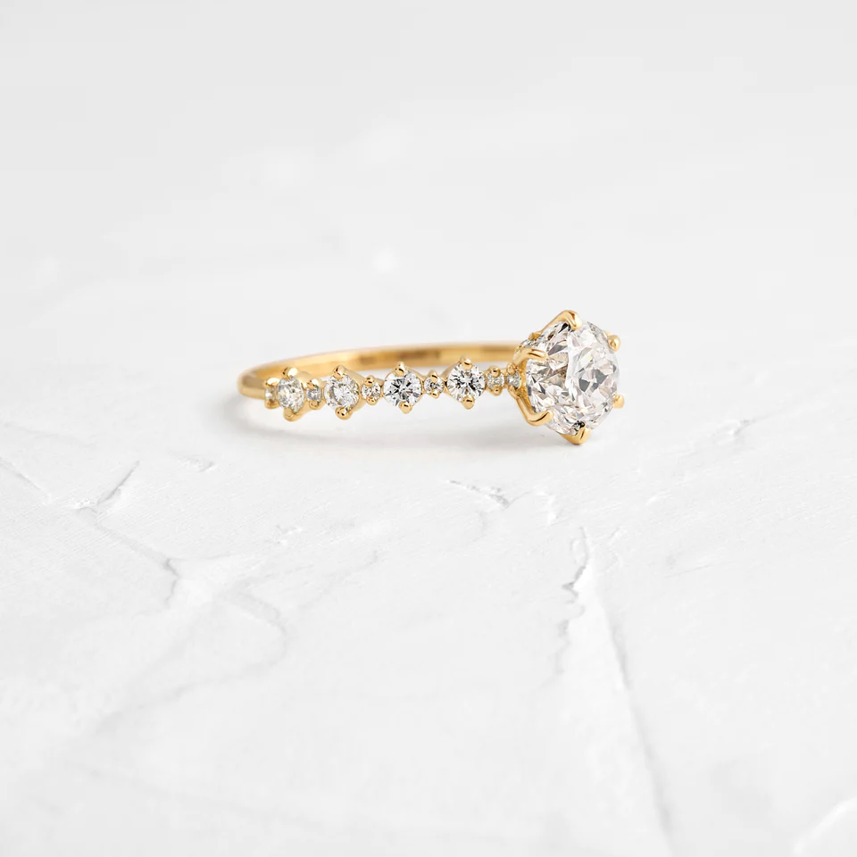 This 14K solid gold engagement ring features a brilliant round moissanite diamond—crafted for lasting beauty and a timeless symbol of your love story.