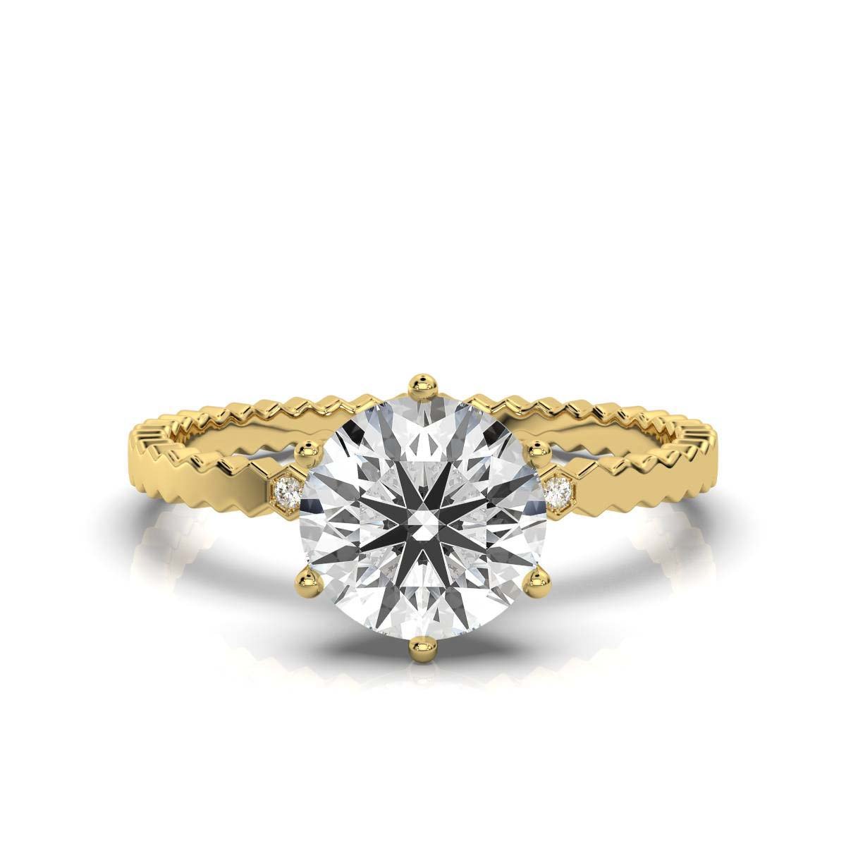 A 2 ct round lab-grown diamond ring with six accent diamonds in a bezel setting, crafted in solid 14K gold. IGI & BIS certified.