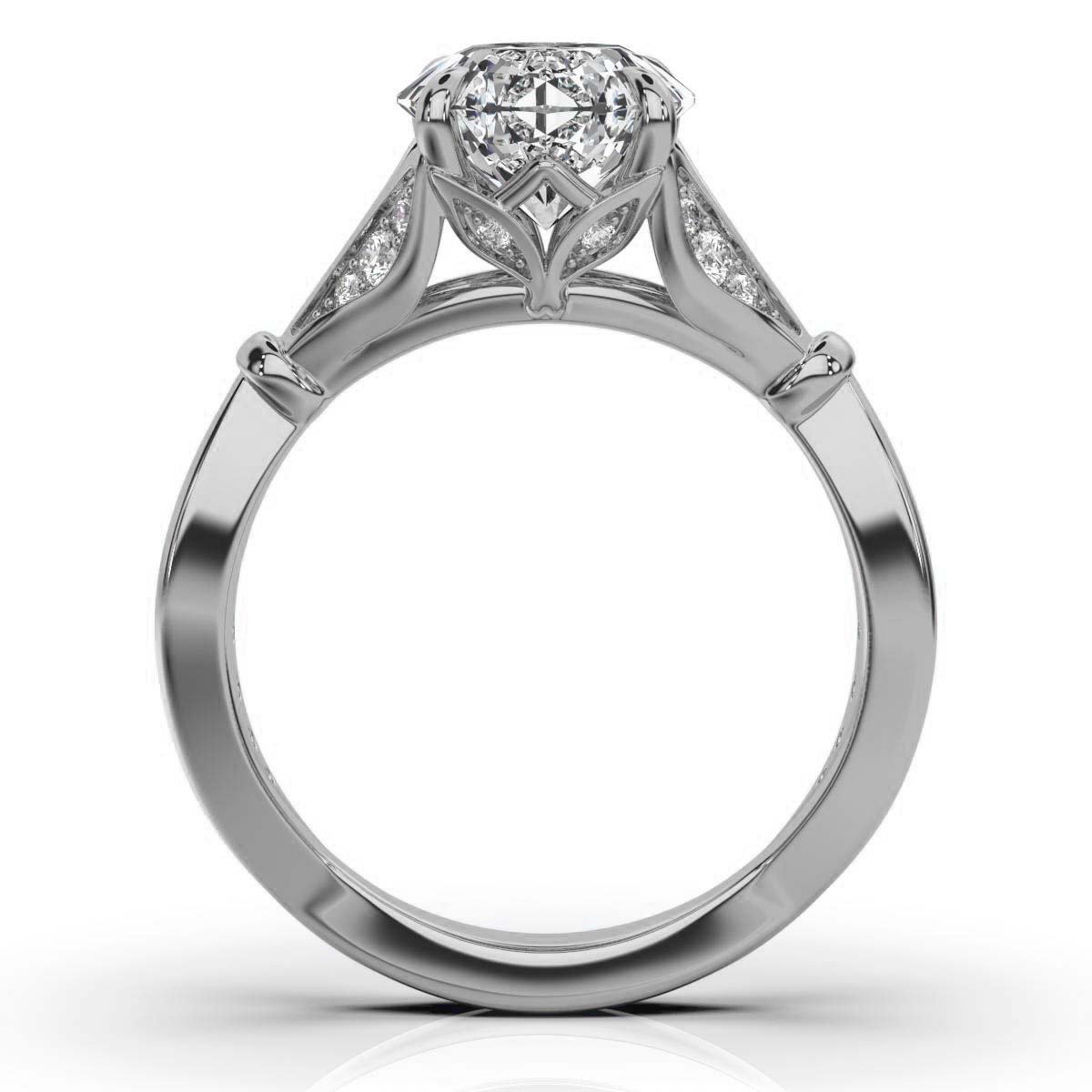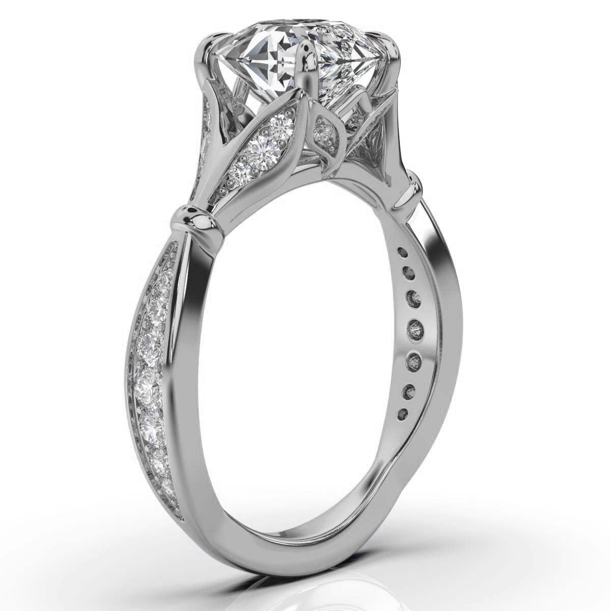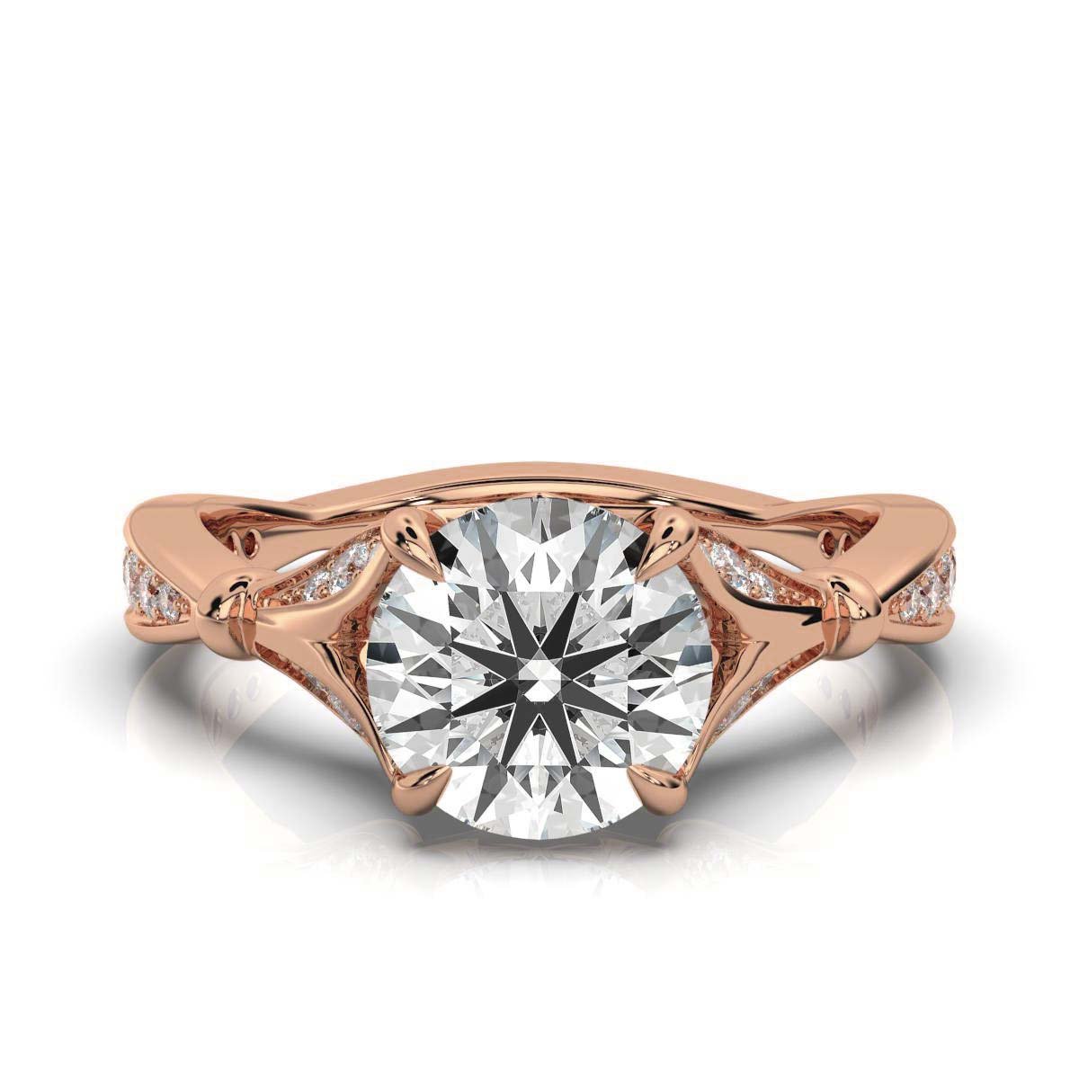 Elegant round shape lab-grown diamond ring with a 2ct round center stone and side stones in round shape.