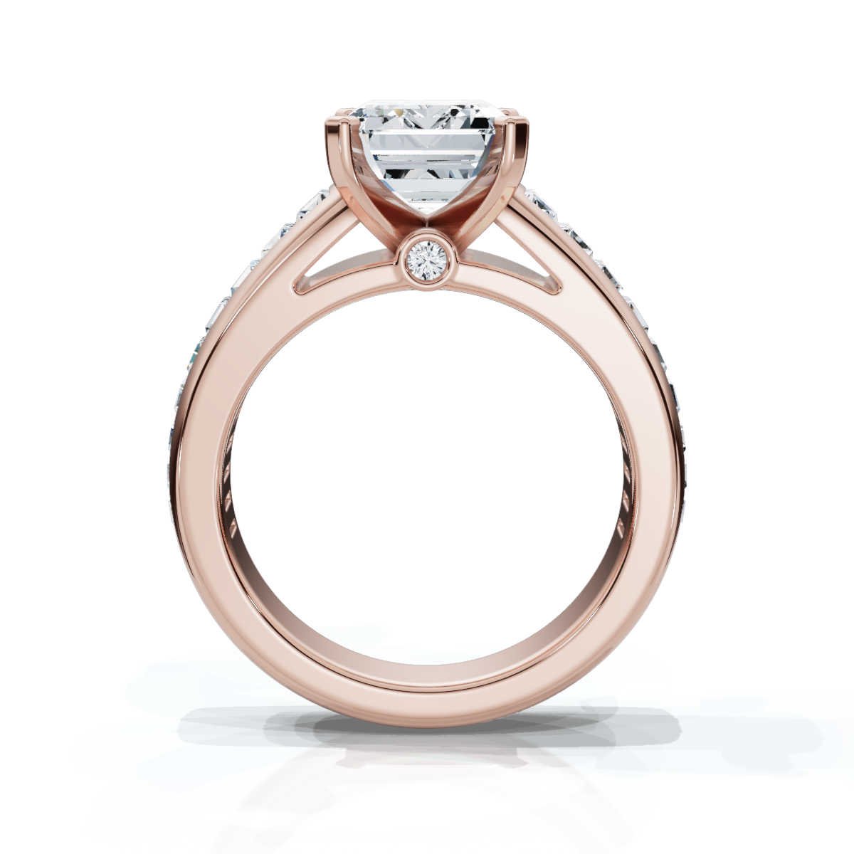 A 14K solid gold solitaire engagement ring featuring a 2ct emerald-cut lab-grown diamond, enhanced by 1.01ct of round, baguette, and tapered baguette diamonds. Available in white, yellow, or rose gold, with IGI & BIS certification and a comfortable fit.