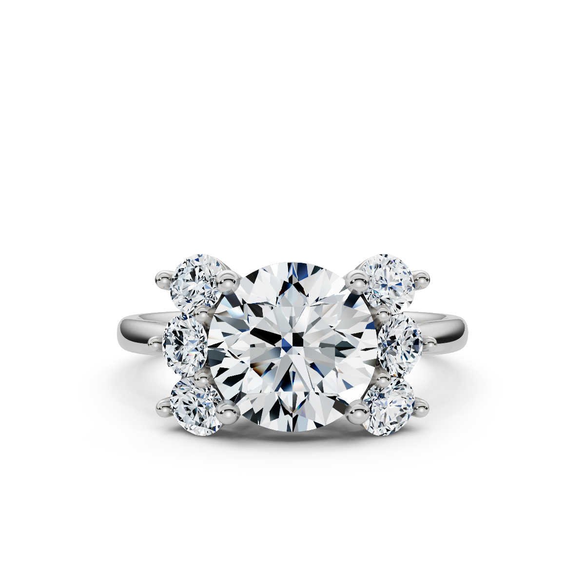 Elegant 14K Solid Gold Solitaire Lab-Grown Diamond Engagement Ring, featuring a 2ct Super Cut diamond with six side diamonds (0.6ct total). Available in white, rose, and yellow gold. IGI & BIS certified.