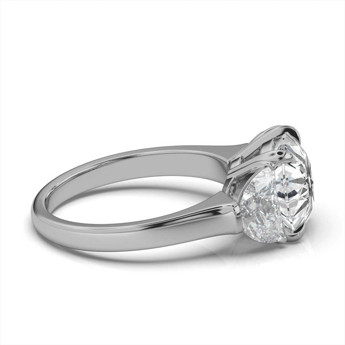 Celebrate your love story with our 14K Solid Gold Three Stone Half-Moon Moissanite Diamond Ring, a stunning symbol of your past, present, and future. This exquisite ring features a radiant 2-carat super-cut moissanite diamond as the centerpiece, showcasing exceptional brilliance and a captivating D color with VVS1 clarity.