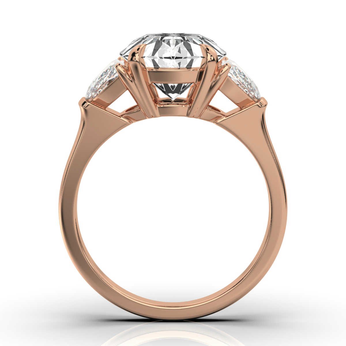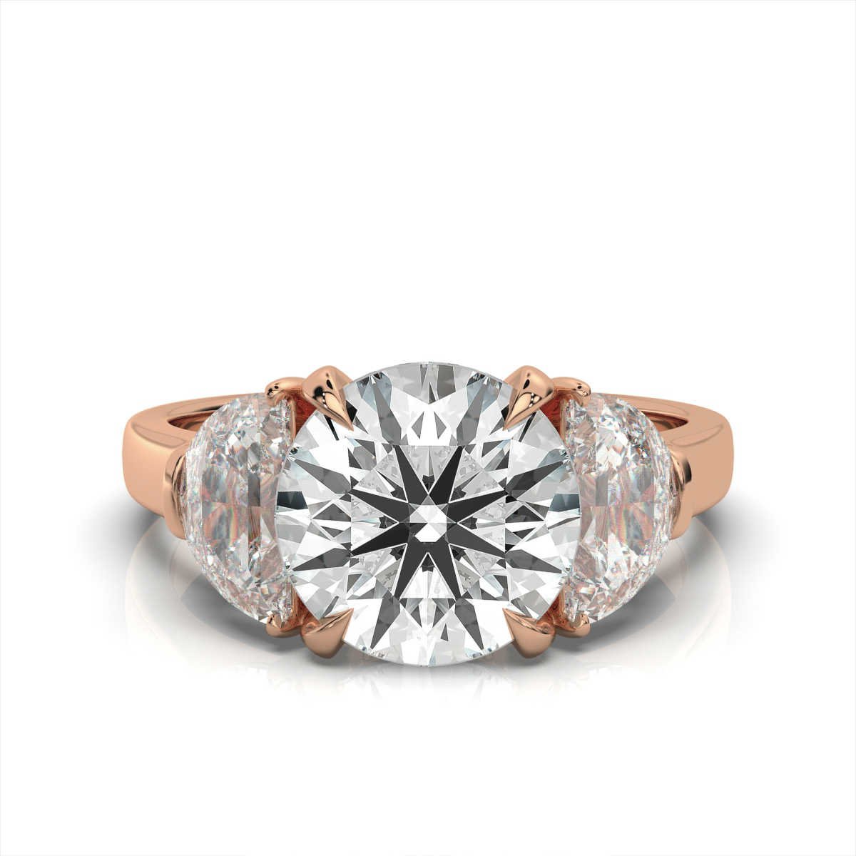 14K Solid Gold Three Stone Half-Moon Moissanite Diamond Ring