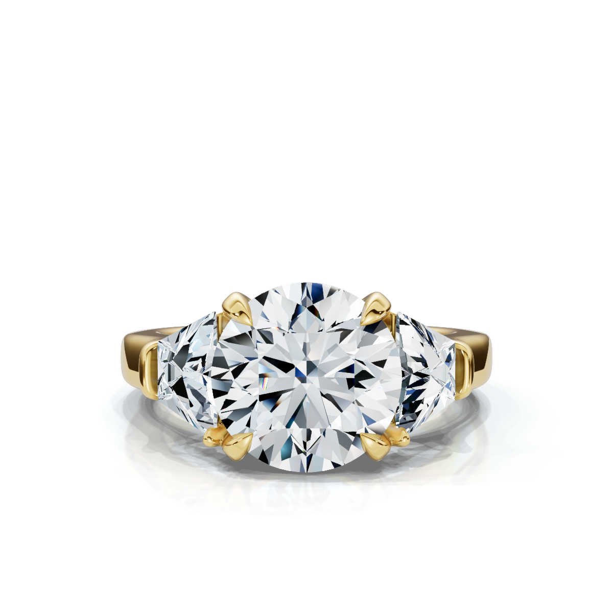 This 14K solid gold engagement ring features three moissanite diamonds—representing a love that honors the past, cherishes the present, and promises a future.