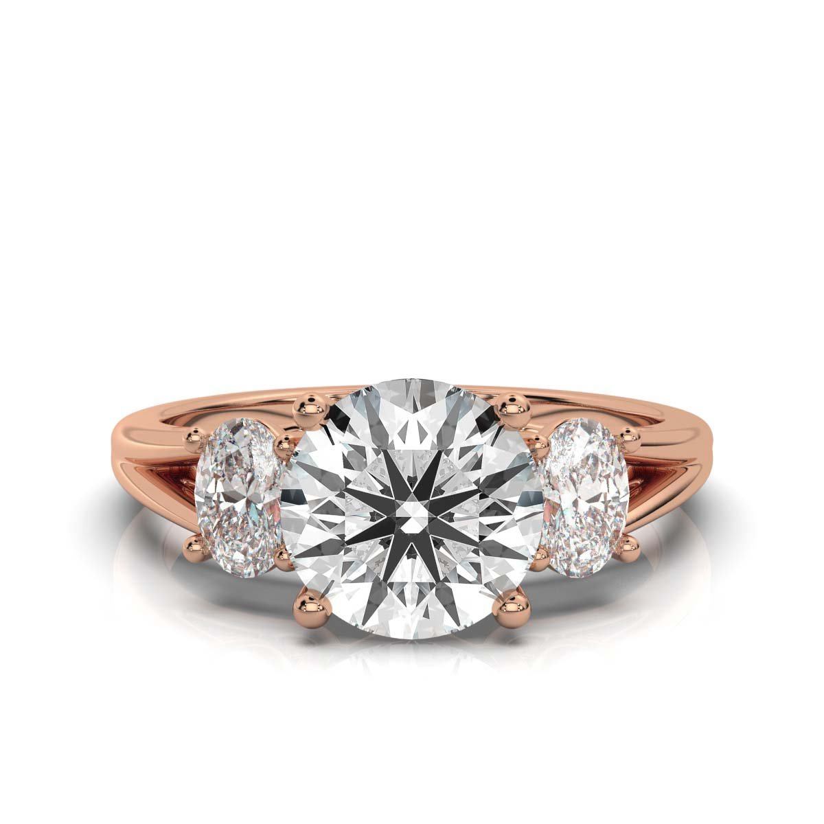 14K Solid Gold Three Stone Oval Moissanite Diamond Engagement Ring