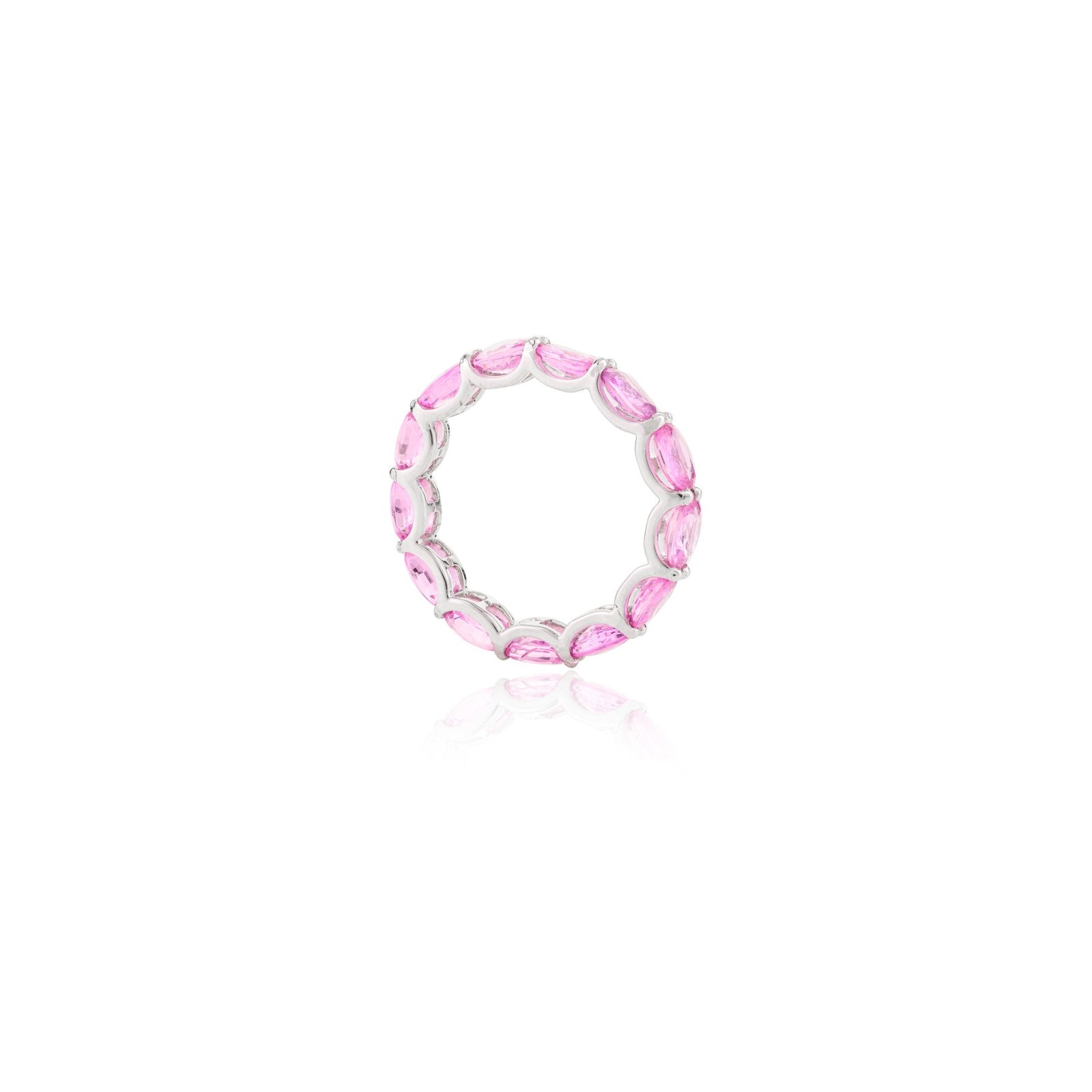The pink sapphires, with their rich and vibrant hue, create a captivating and elegant look that is perfect for any special occasion. The eternity design ensures that the sapphires are visible from all angles, providing a continuous sparkle that enhances the beauty of the band.