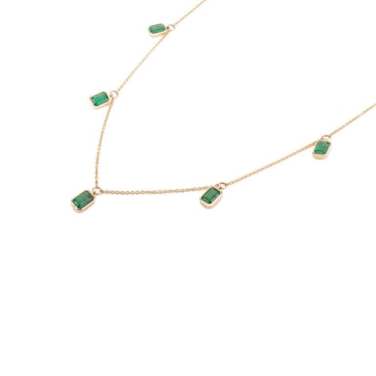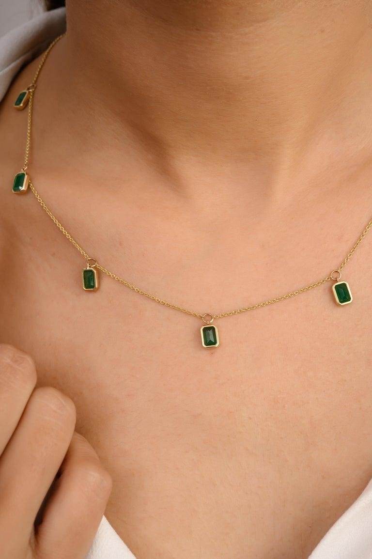 Elevate your style with the 14K Solid Gold Emerald Charm Necklace. Showcasing 4.06 carats of emeralds, this exquisite 17.5-inch necklace is a luxurious addition to any jewelry collection.