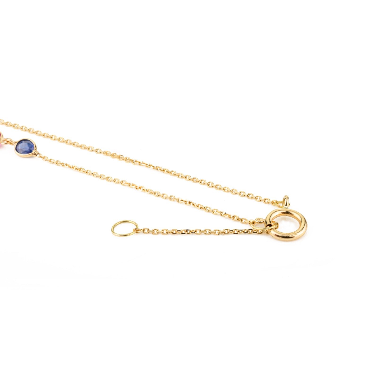 14K solid gold necklace featuring a vibrant mix of gemstones in a station design, perfect for adding colorful elegance to any outfit.