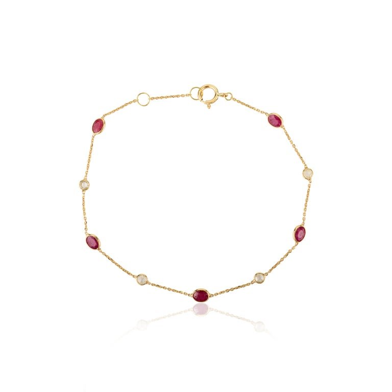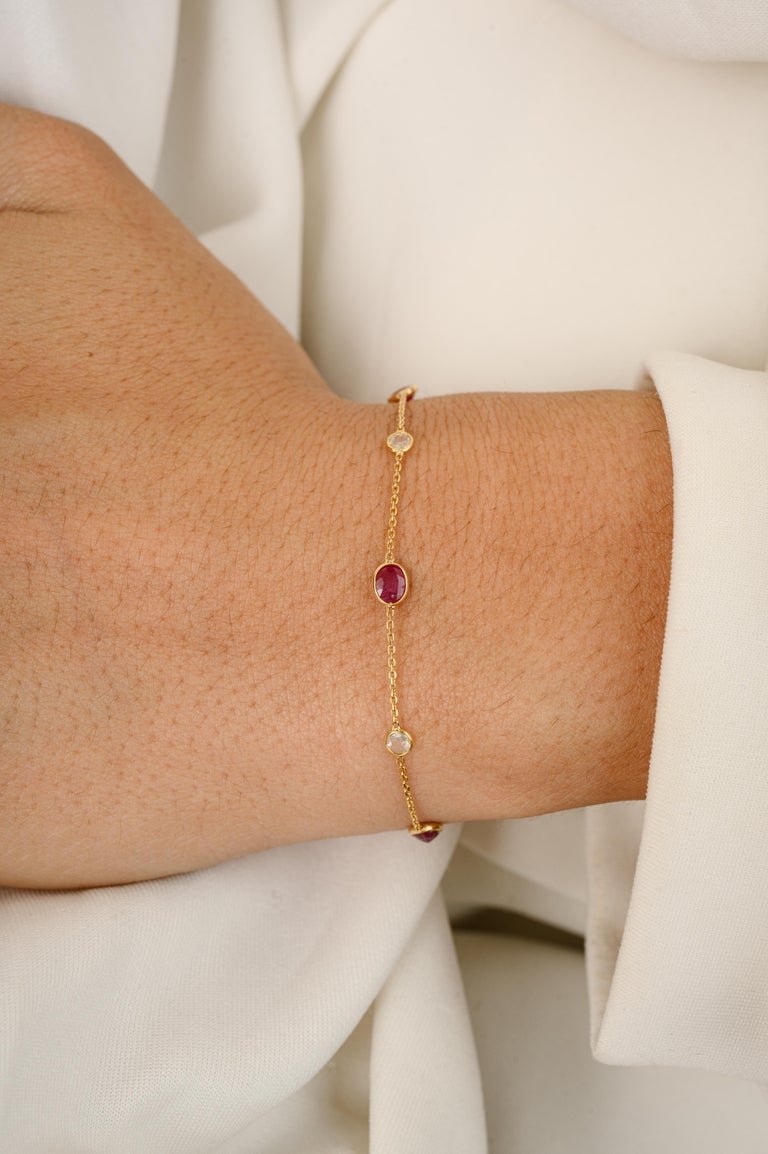 Add a touch of luxury to your jewelry collection with the 14K Solid Gold Ruby Diamond Chain Bracelet, a beautiful piece that exudes elegance and sophistication.