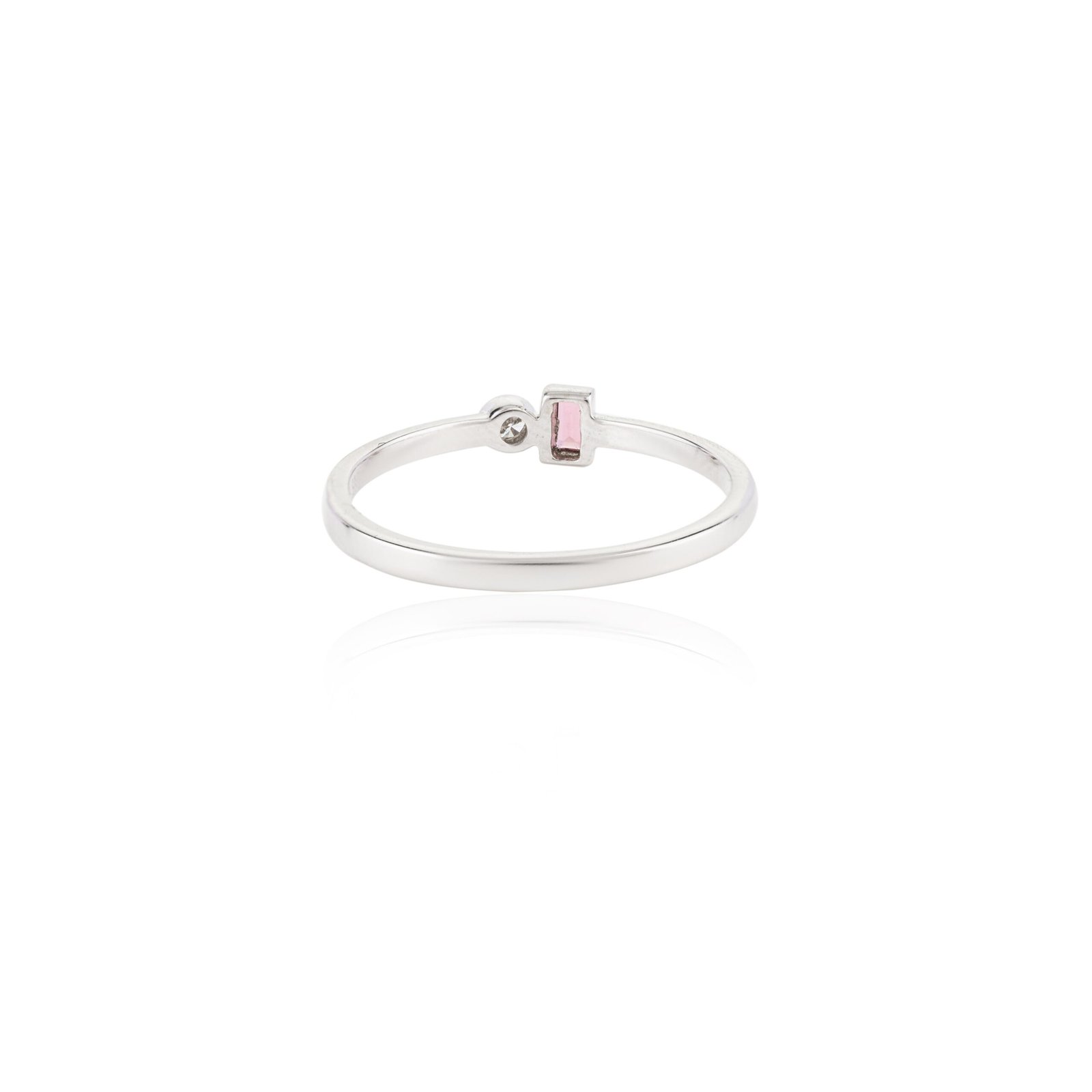 The 14K Solid Gold Tourmaline Diamond Adjustable Ring is a stunning piece that elegantly combines the vibrant beauty of tourmaline with the timeless sparkle of diamonds. Crafted from 14K solid gold, this ring features a captivating baguette-cut tourmaline, weighing 0.05 carats and measuring 2.46 x 1.09 mm. The rich color of the tourmaline is beautifully complemented by a brilliant diamond, weighing 0.03 carats and measuring 1.83 mm.