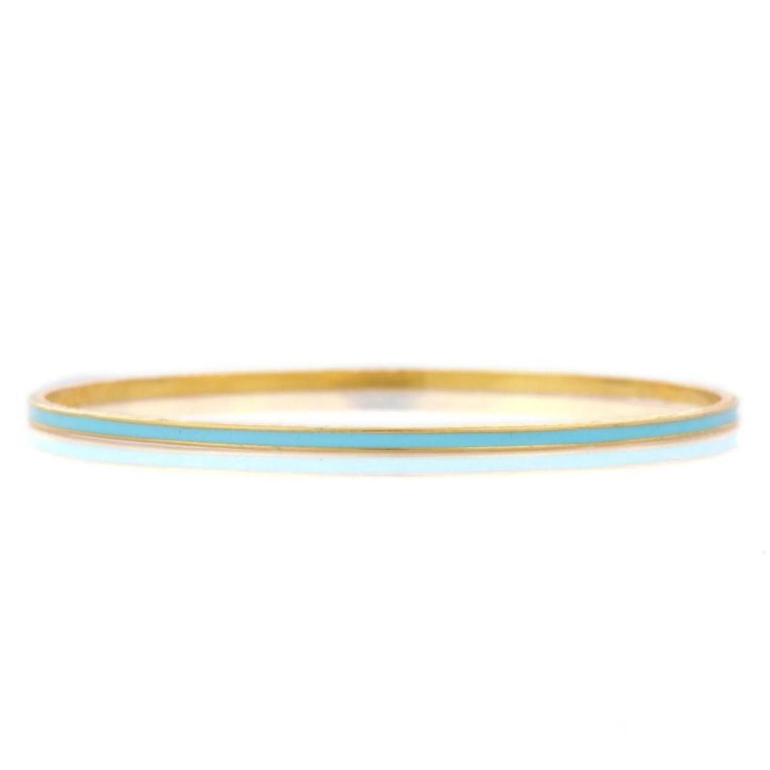 The enamel detailing on the bangle adds a modern twist to the classic gold design. The smooth, polished enamel creates a striking contrast against the warm tones of the yellow gold, resulting in a piece that is both eye-catching and elegant. The combination of enamel and gold gives the bangle a contemporary edge, making it a versatile accessory that can be dressed up or down depending on the occasion.
