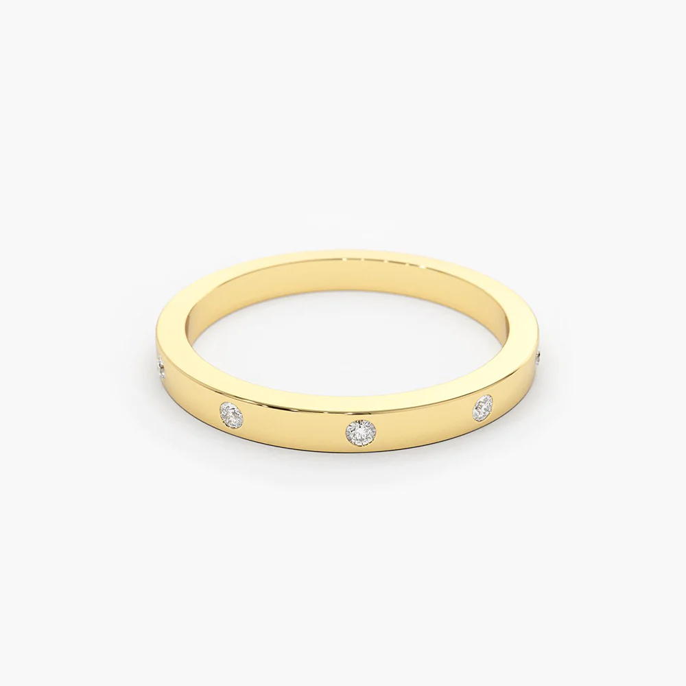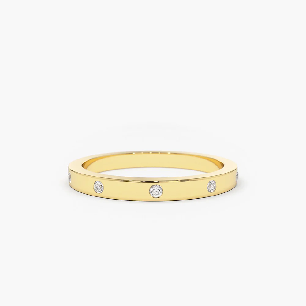 18k solid gold burnish-set wedding ring with 10 round natural diamonds (1.35 mm). GH color, VS-SI clarity. BIS Hallmarked & GIA certified.