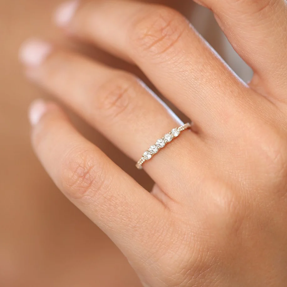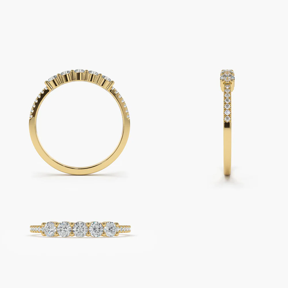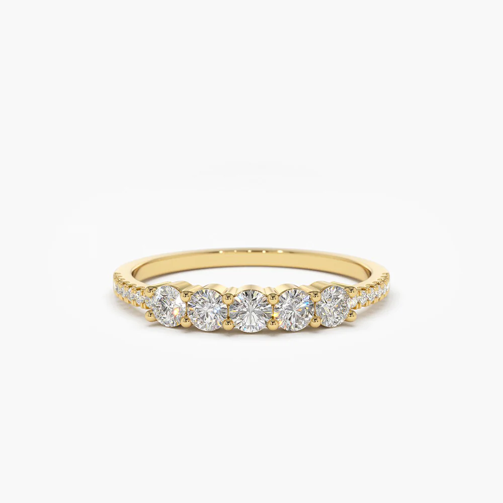 Celebrate timeless moments with this stunning 18k Gold 5 Stone Natural Diamond Anniversary Ring, crafted from solid 18k gold and available in White, Rose, and Yellow Gold. This elegant ring features a total of 19 round natural diamonds, artfully arranged with 14 smaller diamonds measuring 1.0 mm each and 5 larger stones at 2.50 mm, delivering a brilliant sparkle from every angle.