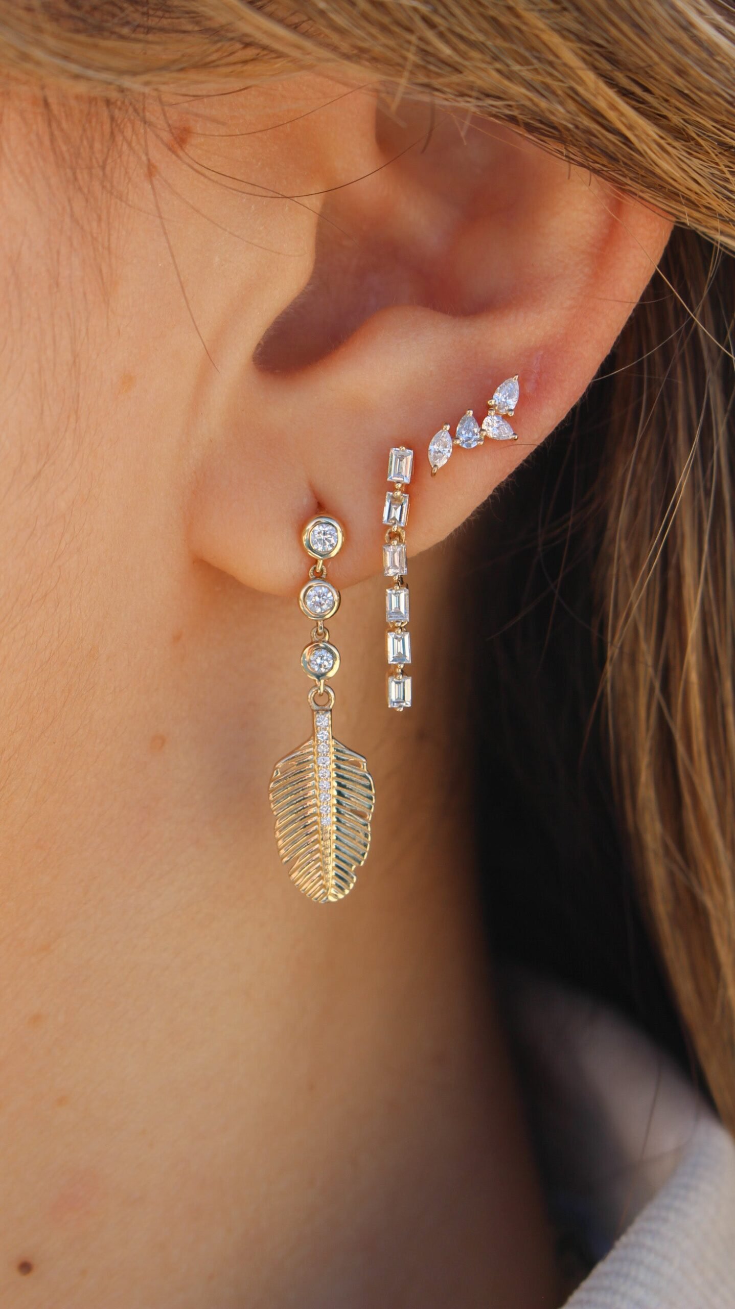 These earrings are designed for those who appreciate refined luxury and sustainable brilliance. The moissanite diamonds, known for their exceptional fire and clarity, offer an ethical and eco-friendly alternative to traditional diamonds without compromising on sparkle. The secure and comfortable setting ensures a graceful dangle, making them perfect for both formal occasions and everyday elegance.