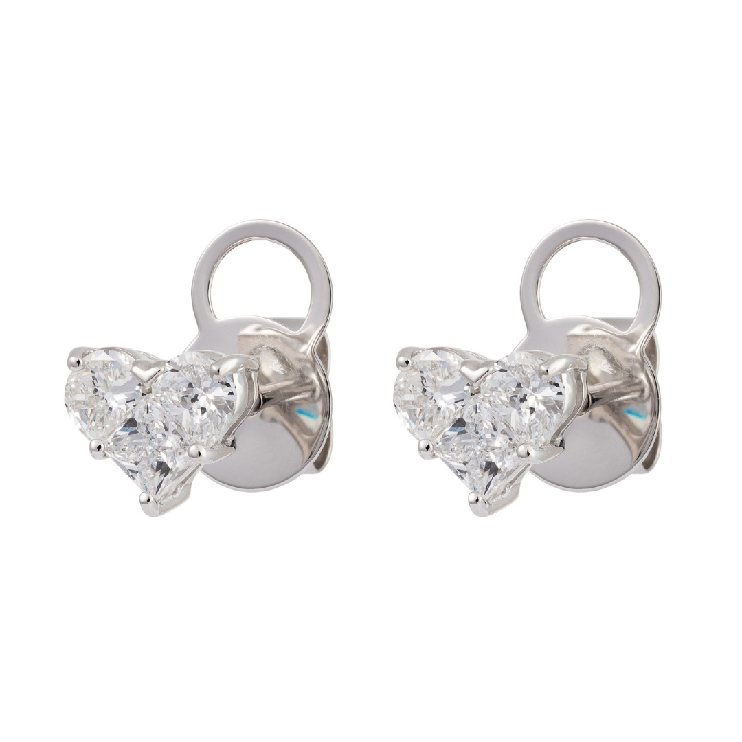 18k Gold Moissanite Diamond Prong Heart Earring Stud