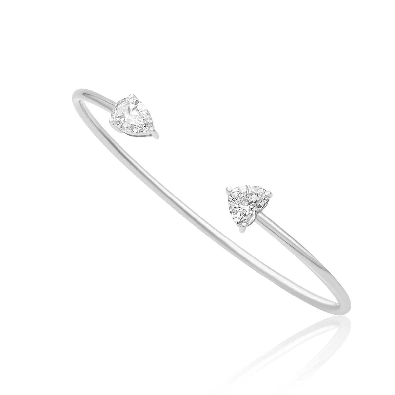 The 18k Gold Moissanite Diamond Pear and Heart Bangle is a stunning fusion of elegance and brilliance. Crafted in 18k Gold, this exquisite bangle showcases a 0.90ct Moissanite Pear diamond and a 0.90ct Moissanite Heart diamond, symbolizing love and sophistication.