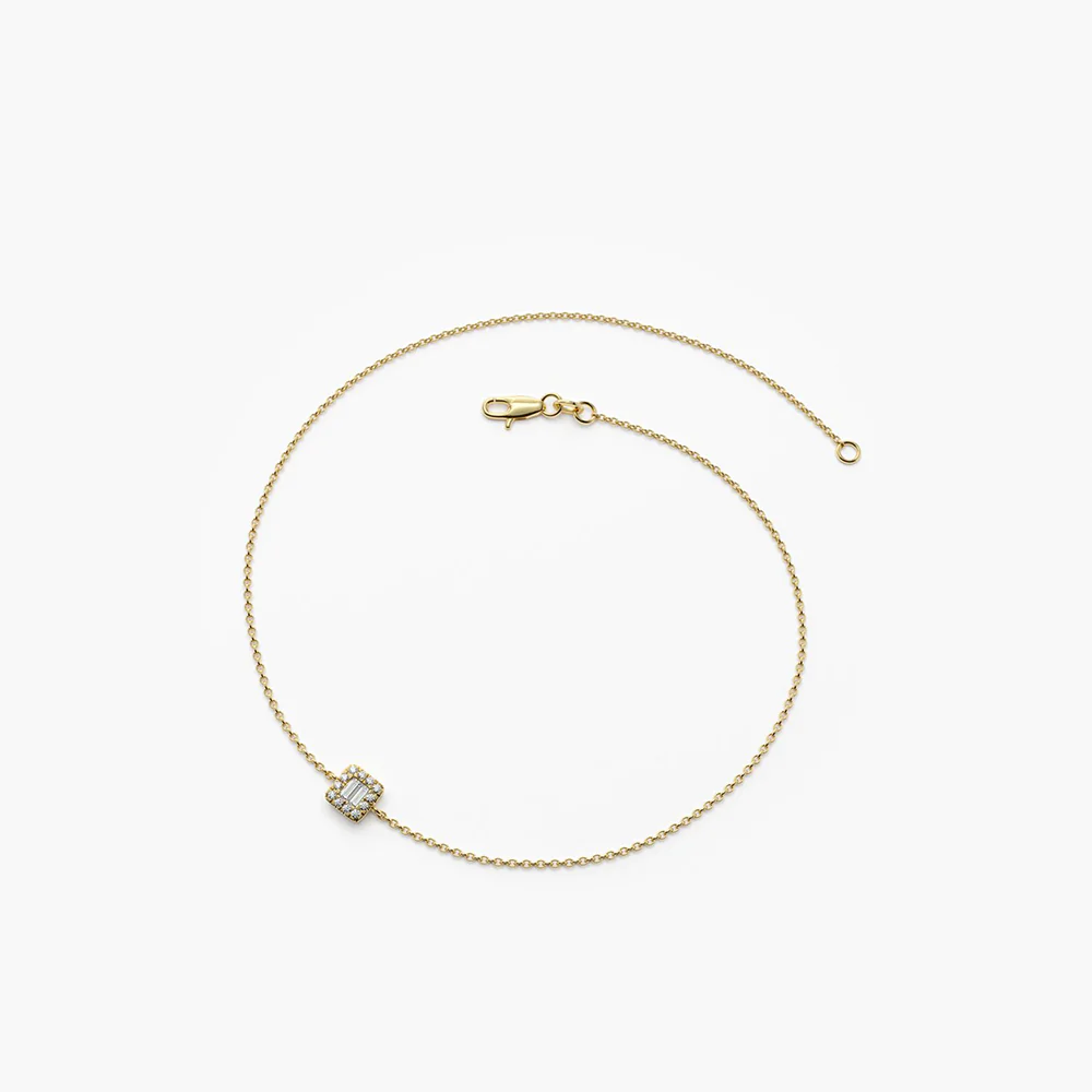 18k Gold Tiny Baguette and Round Moissanite Diamond Station Bracelet