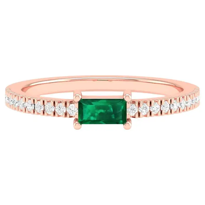 The ring is crafted from high-quality 18k solid gold and is available in white, rose, and yellow gold, allowing you to select the perfect metal for your style. The ring weighs 1.82 grams and provides a comfortable yet durable fit. The ring displays 0.24 carats of vibrant emeralds and 0.16 carats of sparkling diamonds, creating a harmonious visual effect that is sure to catch the eye.