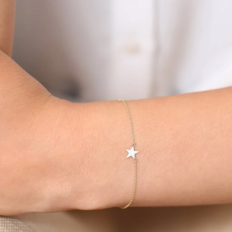 A 18k solid gold lucky star charm bracelet symbolizing hope and guidance. A celestial-inspired piece for everyday elegance. BIS Hallmarked.