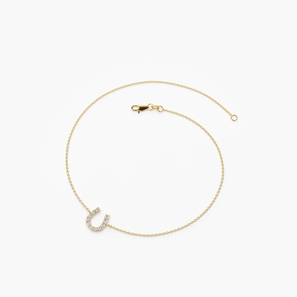 18k Solid Gold Mini Moissanite Diamond Horseshoe Bracelet