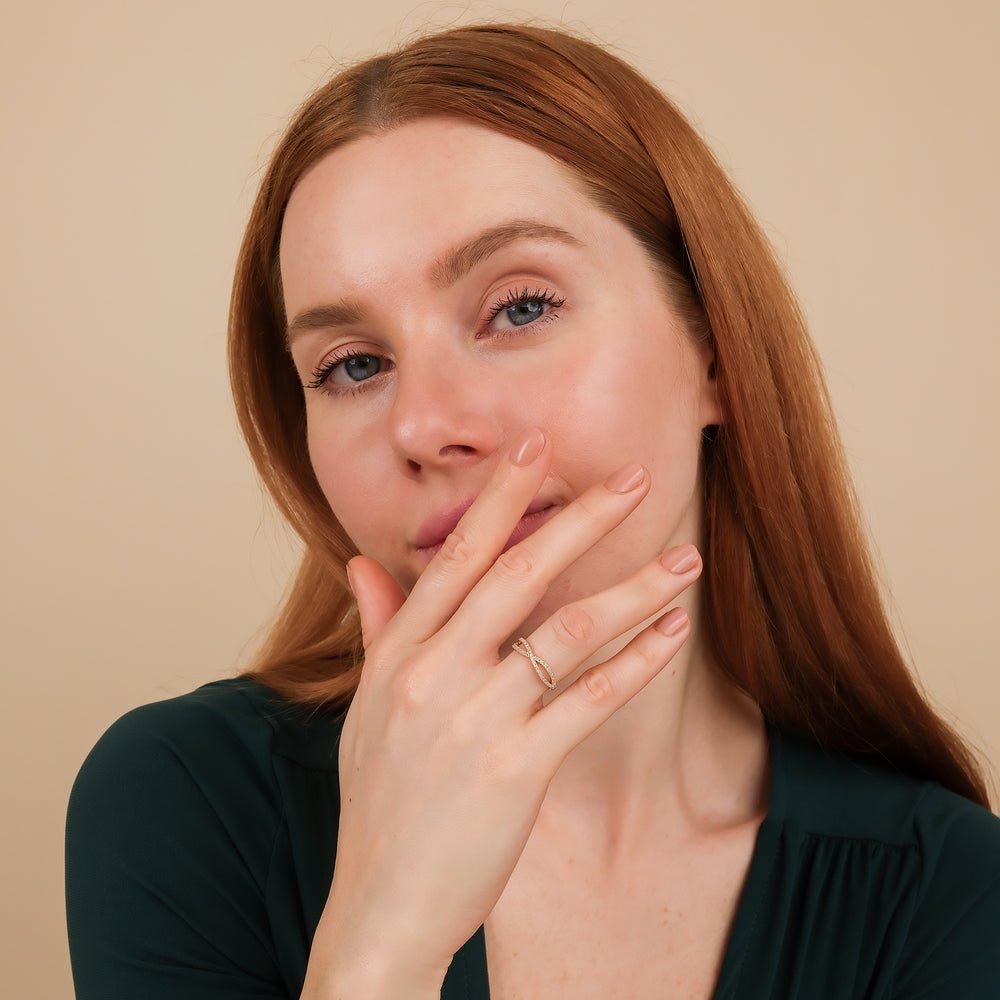18K Solid Gold Natural Diamond Crossover Gold Ring