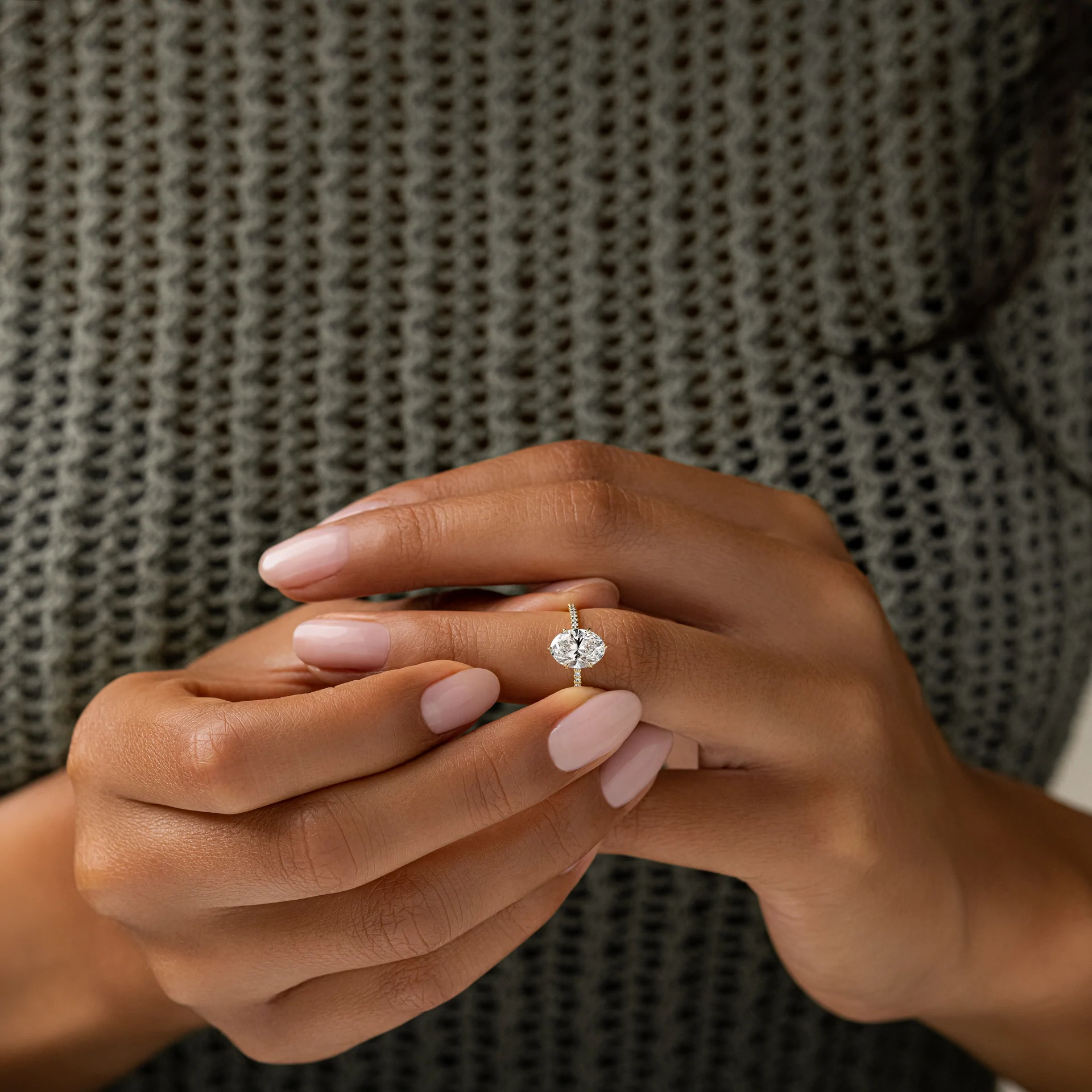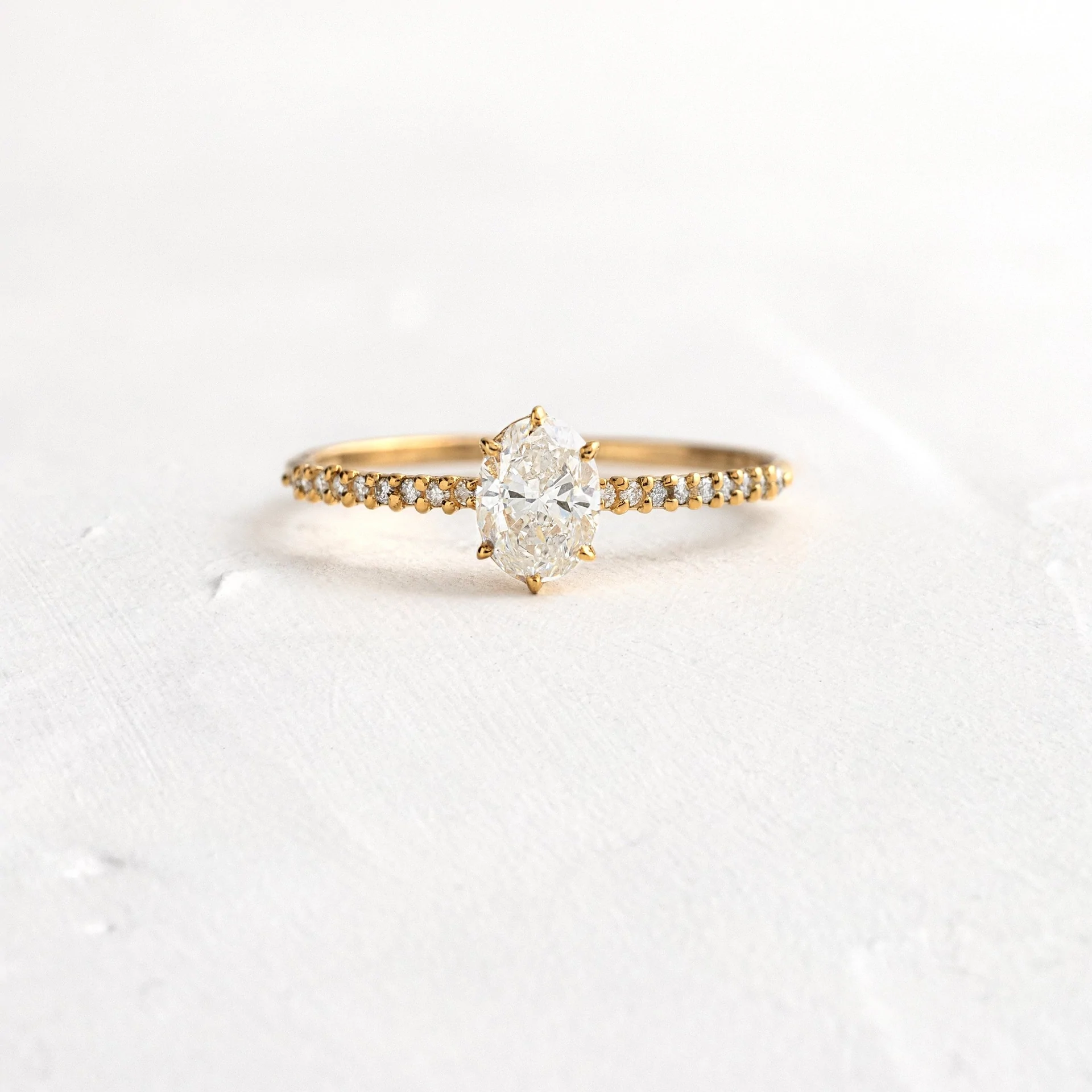18K Solid Gold Pave Band, Oval Cut 1.5 ct Lab-Grown Diamond Ring