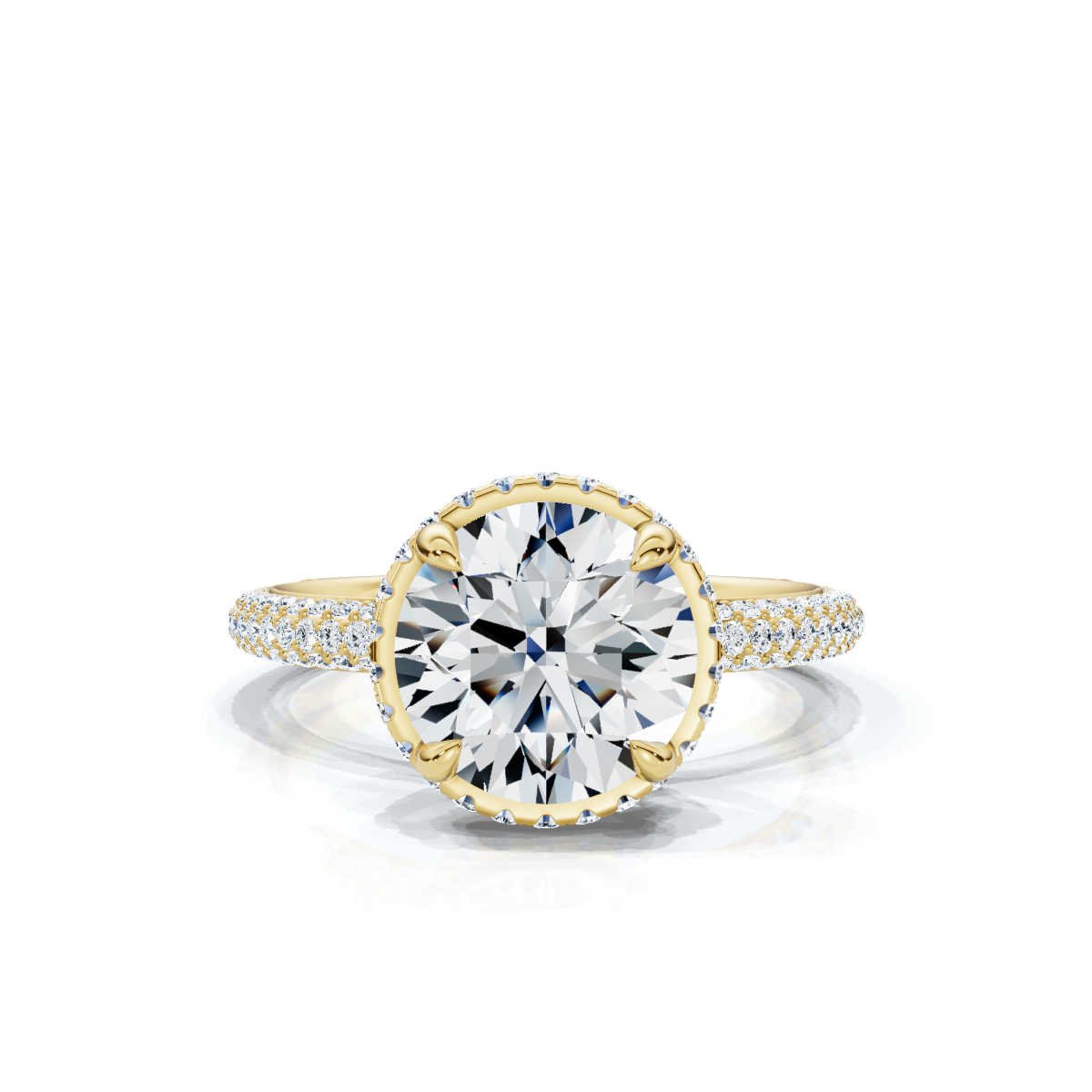 This 18k Solid Gold Lab-Grown Diamond Engagement Ring features a 2ct F/VS2 round diamond with 144 side stones (0.84CTW) for unmatched brilliance. Available in White, Rose, and Yellow Gold, with a comfort-fit band. IGI & BIS Hallmarked for authenticity.