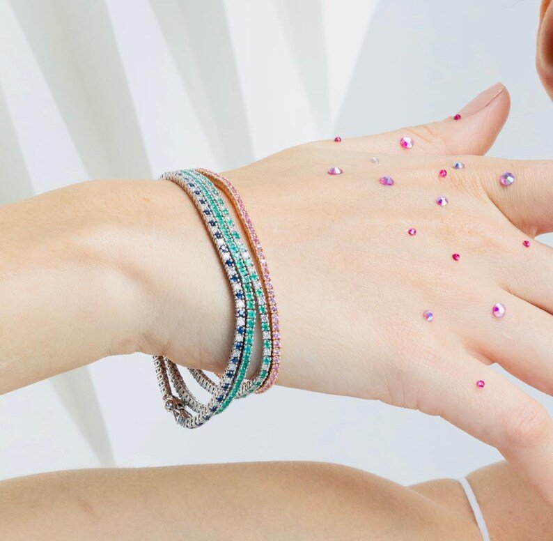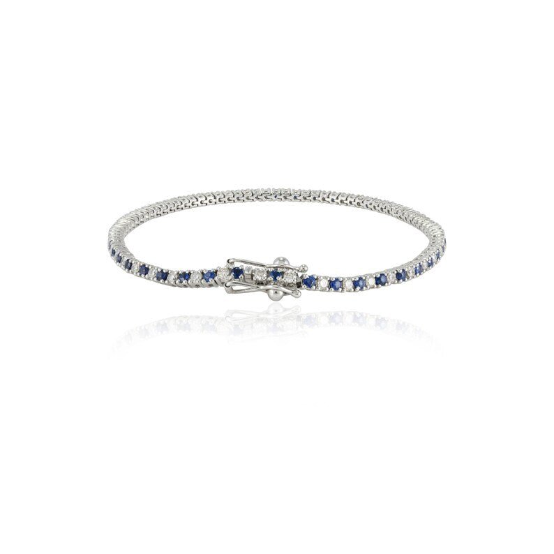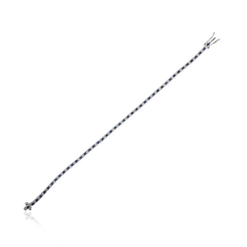 Complementing the sapphires are 44 dazzling diamonds, with a total diamond weight of 1.15 carats. Each diamond, also measuring 2.2 mm, is meticulously set in a prong setting to enhance its natural brilliance and add a touch of sparkle to the bracelet. The combination of the radiant sapphires and the gleaming diamonds creates a stunning contrast that exudes sophistication and charm.