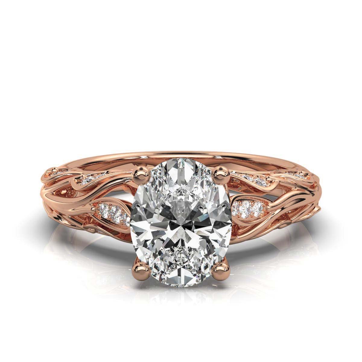 A stunning 18k Solid Gold Solitaire Lab Grown Diamond Engagement Ring featuring a 2ct oval center diamond and 56 round side diamonds. IGI & BIS Hallmarked.