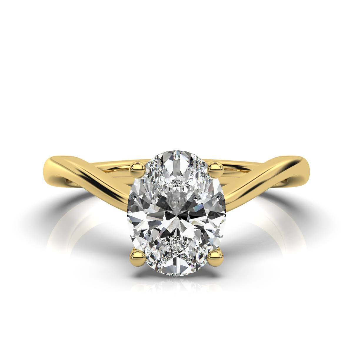 Elegant 2ct oval lab-grown diamond in a 18k solid gold solitaire setting, IGI & BIS certified, available in white, rose, or yellow gold.