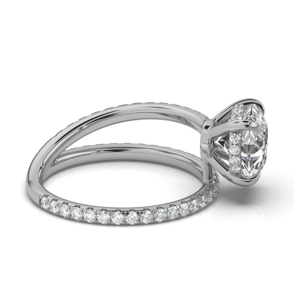 A breathtaking 2 ct lab-grown diamond ring with 64 side diamonds (0.68 ct total) on a stunning split shank 18k gold setting. IGI & BIS certified.