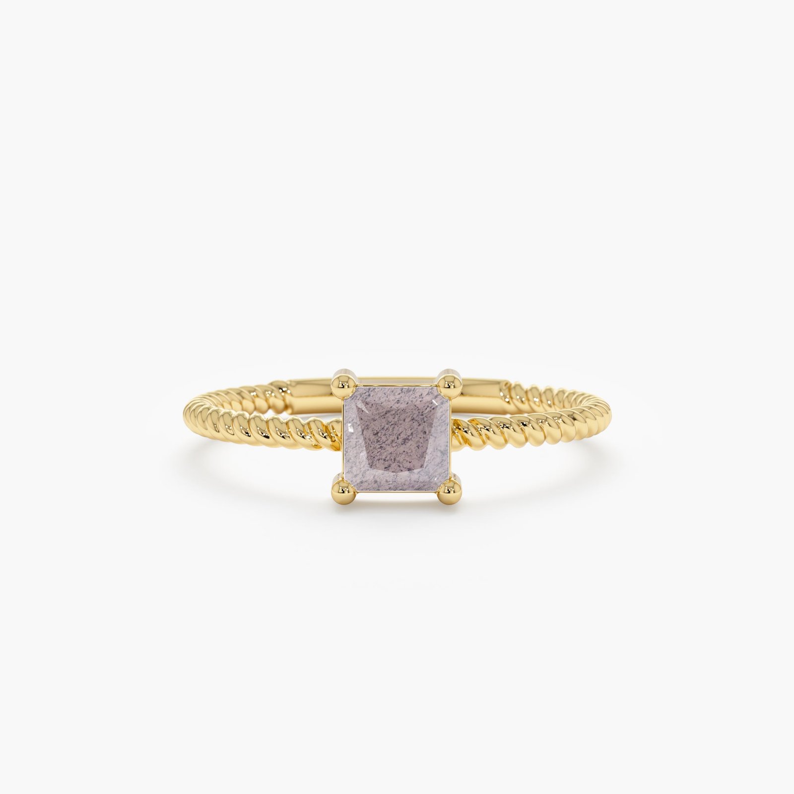 A captivating 18k solid gold square labradorite ring, featuring a shimmering labradorite stone in a sleek and modern design for a unique look.