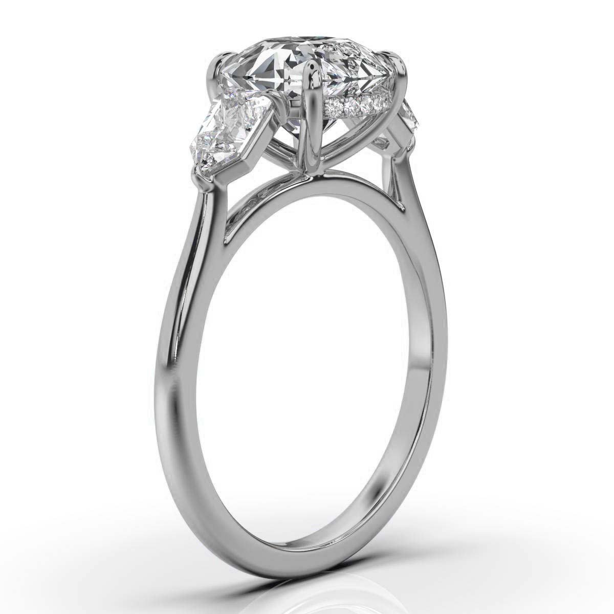 Elegant 3-stone bullet-shaped lab-grown diamond ring with 2ct center stone in a 18k solid gold band, available in White, Rose, or Yellow Gold.