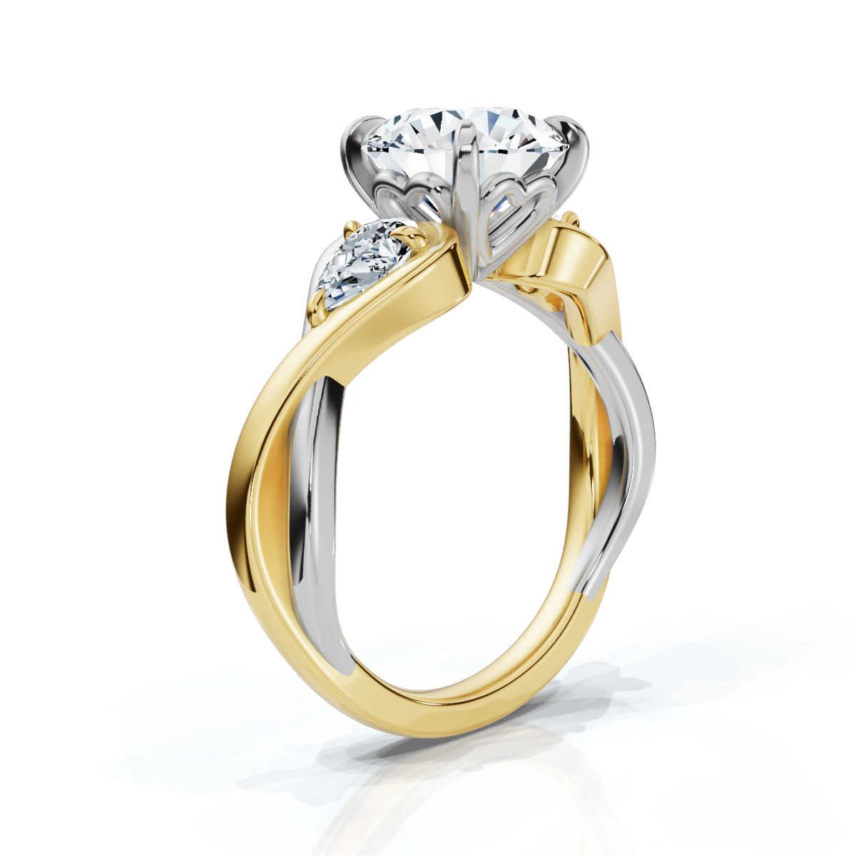 Symbolizing past, present, and future, the 18K Solid Gold Three Stone Moissanite Diamond Engagement Ring is a breathtaking representation of eternal love. The ring showcases a 2ct D-color VVS1 Moissanite center stone, cut to Super Cut standards, ensuring maximum brilliance and fire. This stunning centerpiece is complemented by two pear-shaped Moissanite side stones, totaling 0.57ct, adding a graceful and elegant touch to the design.