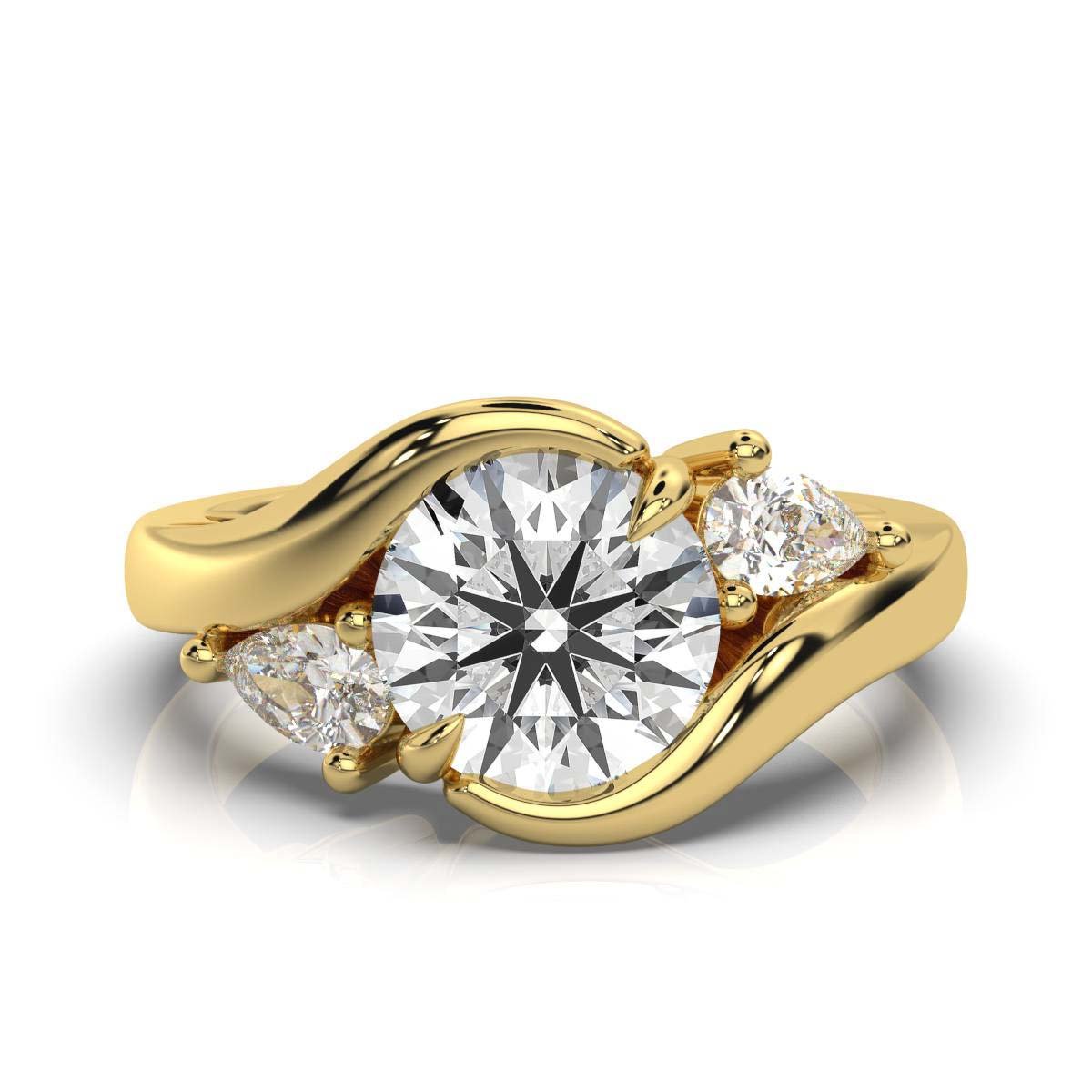 18K Solid Gold Three Stone Pear Moissanite Diamond Ring