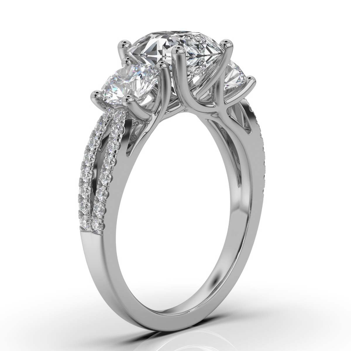 - Setting: Three-Stone Design
