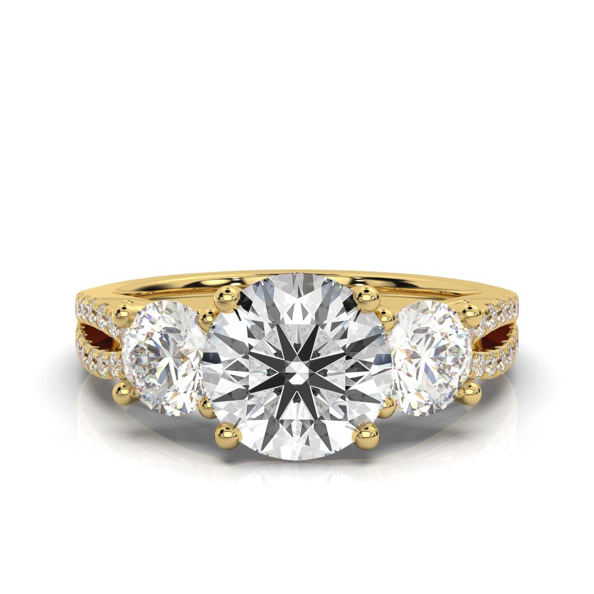 18K Solid Gold Three Stone Round Moissanite Diamond Engagement Ring