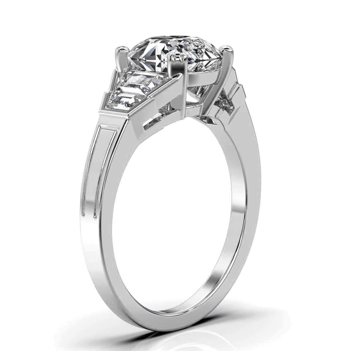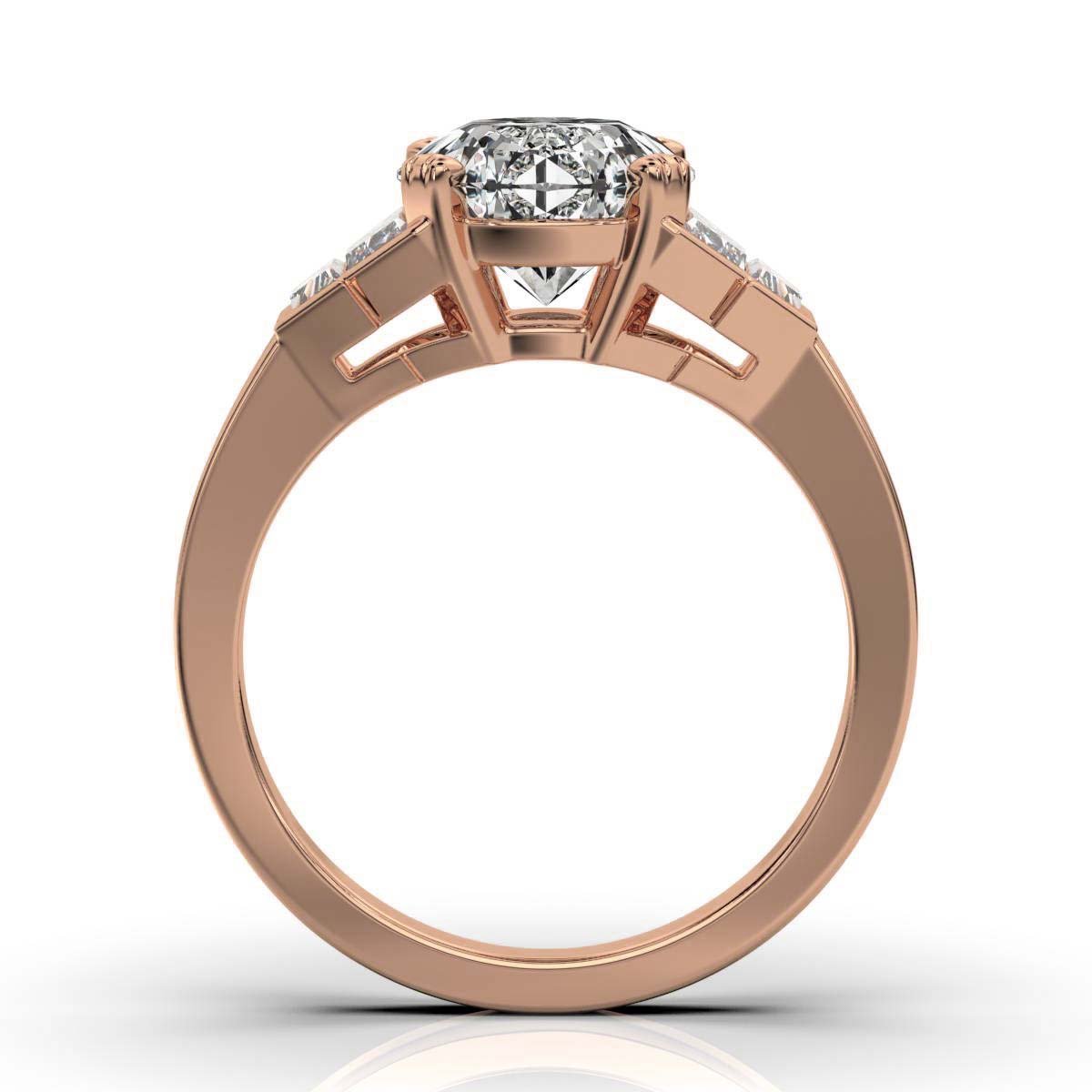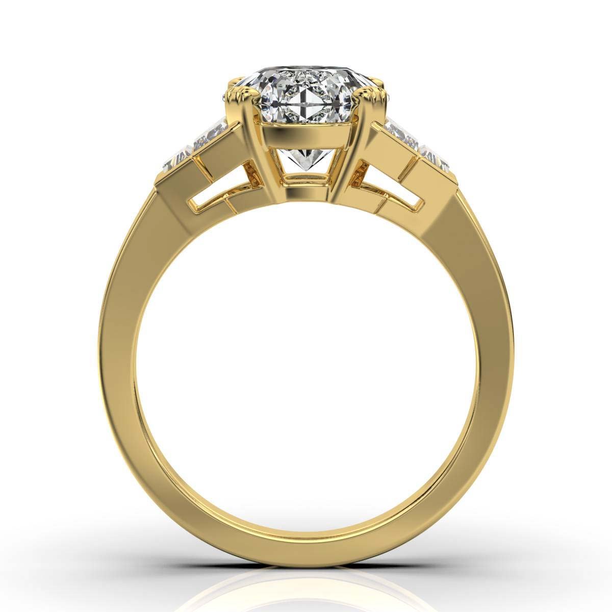 18K Solid Gold Trapezoid Round Shape Lab Grown Diamond Engagement Ring