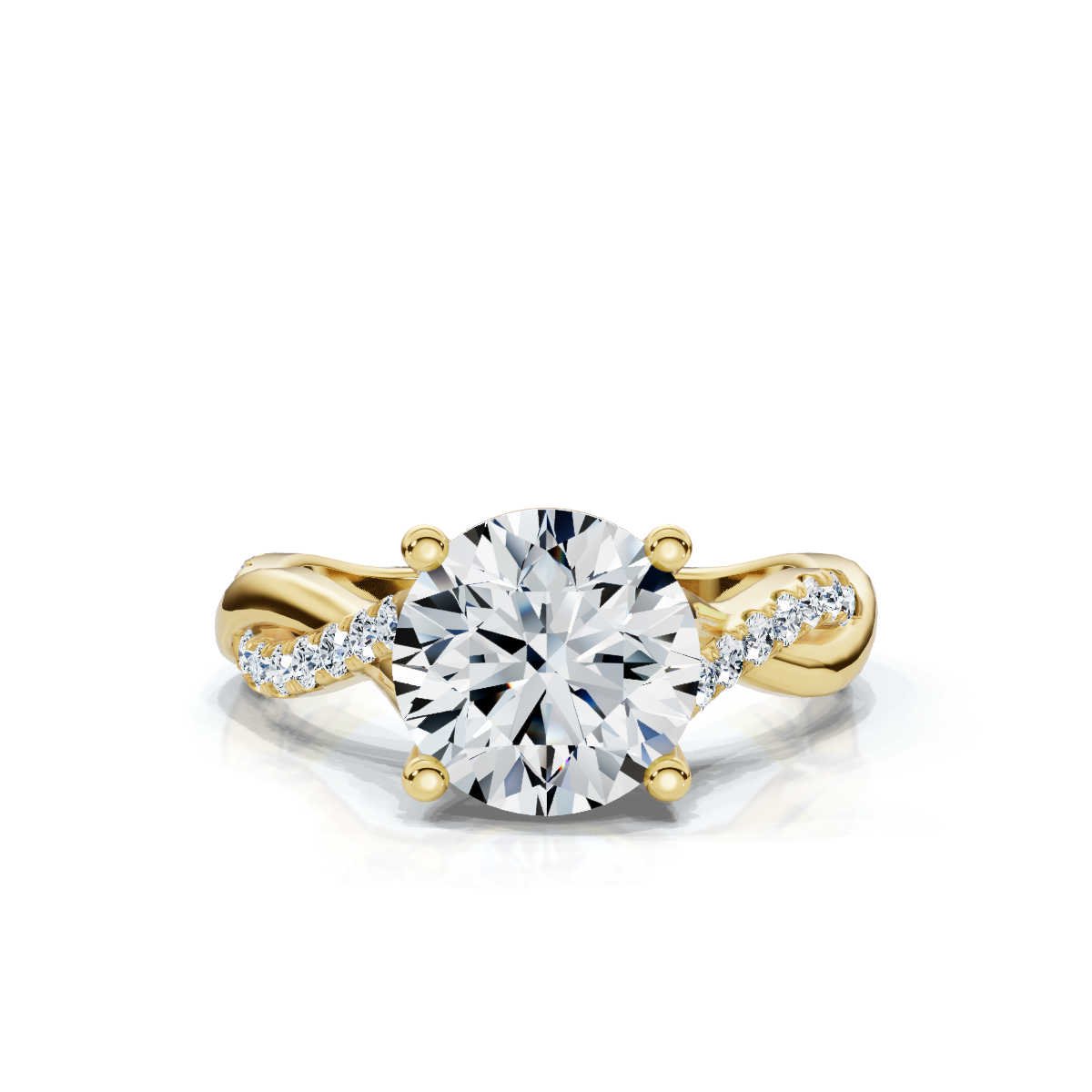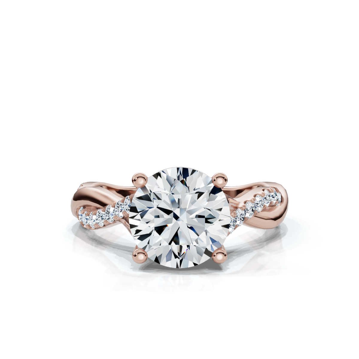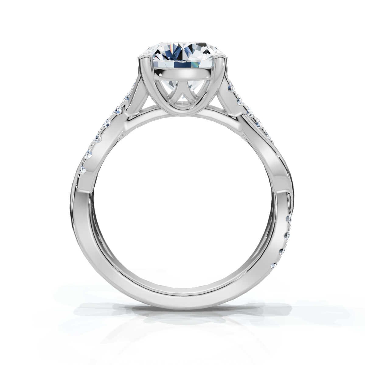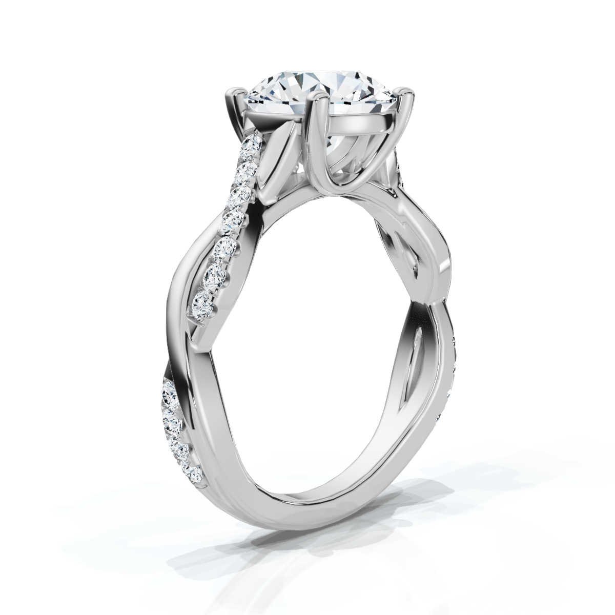 A 2Ct lab-grown diamond engagement ring featuring a twist shank design with 22 accent diamonds (0.22CTW) in 18k solid gold. Available in white, rose, and yellow gold. IGI & BIS certified.