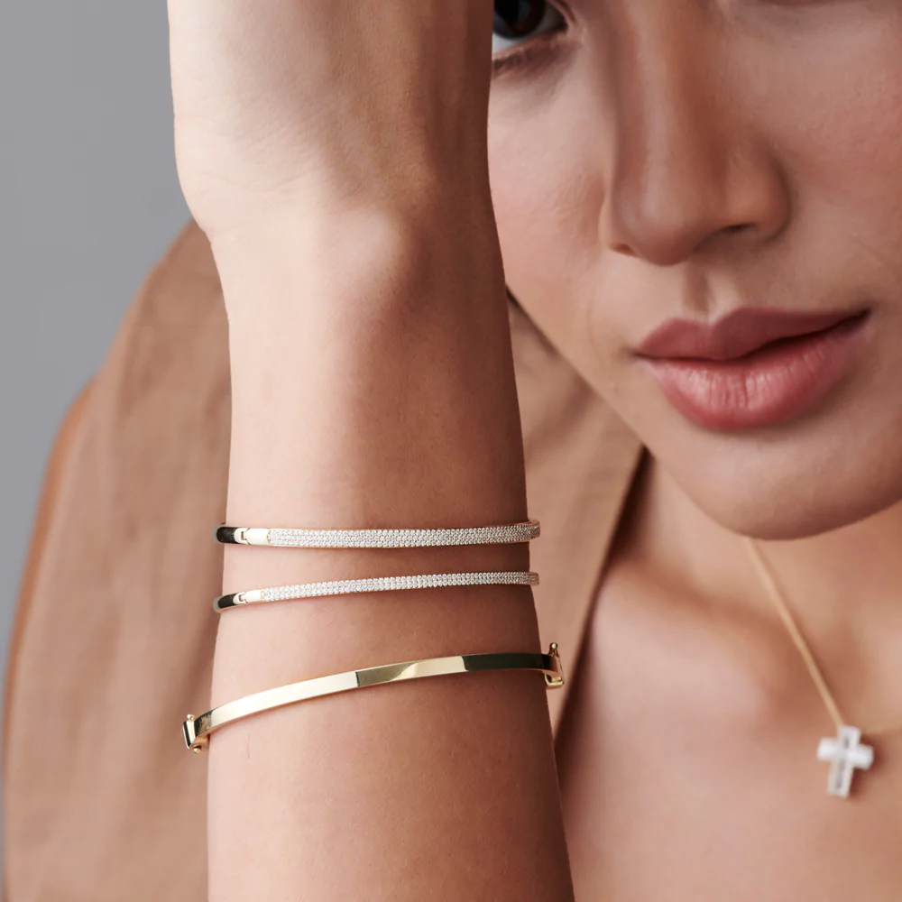 “Elegant 18k Solid Gold Two Pave Diamond Bangle Bracelet – a timeless design with two pave diamond rows, adding sophistication and sparkle to any outfit.”