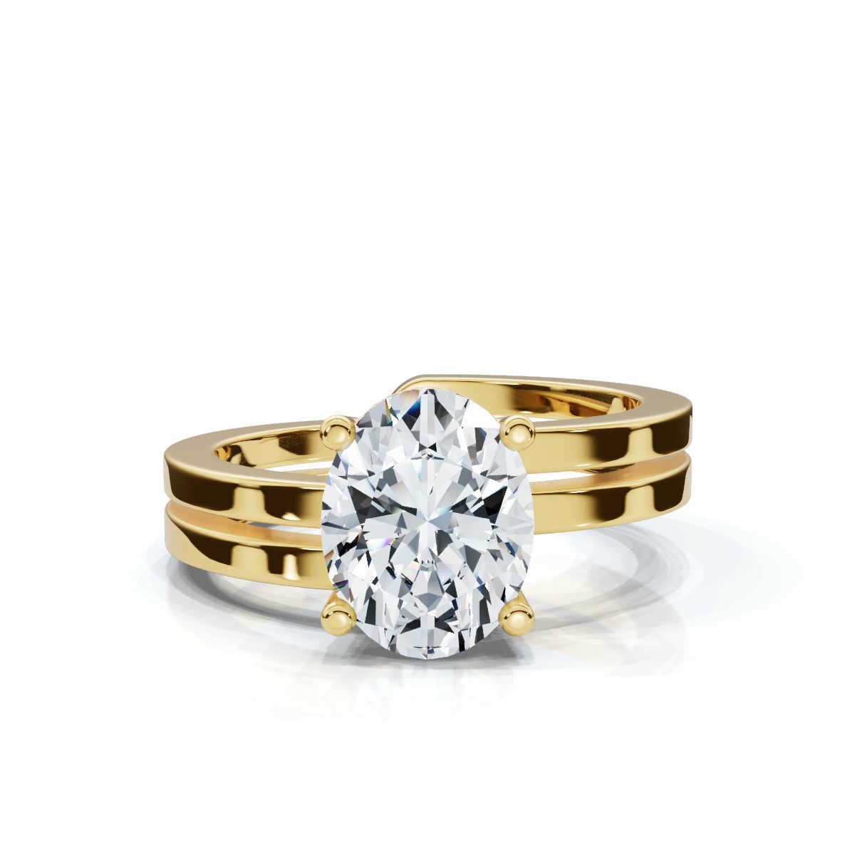 Stunning 2ct oval lab-grown diamond set in a 18k solid gold spiral band. Available in white, yellow, or rose gold, IGI & BIS certified for the perfect engagement ring.
