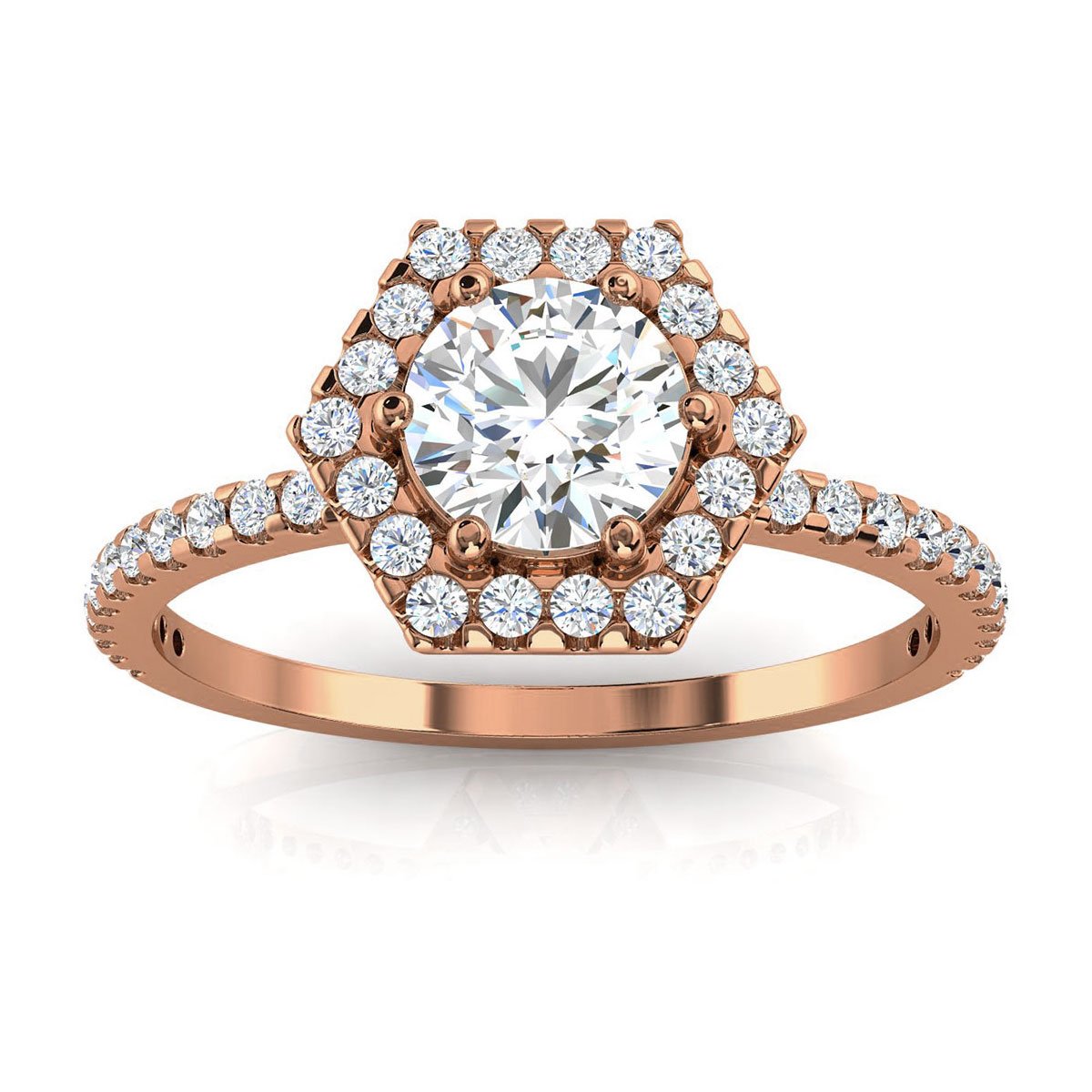 The 4 Prong Round Cut Halo Solitaire Ring 2 ct Lab Grown Diamond Engagement Ring by The Karat Store combines timeless elegance and sustainability. Available in 14K gold with options for rose, yellow, or white gold, featuring a 2.00 ct lab-grown diamond with VVS-VS clarity and E-F colour. Perfect for the eco-conscious couple.