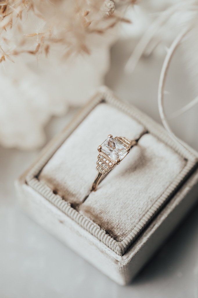 4 Prong 2ct Emerald Cut Lab Grown Diamond Engagement Ring | Multiple Stone on Band