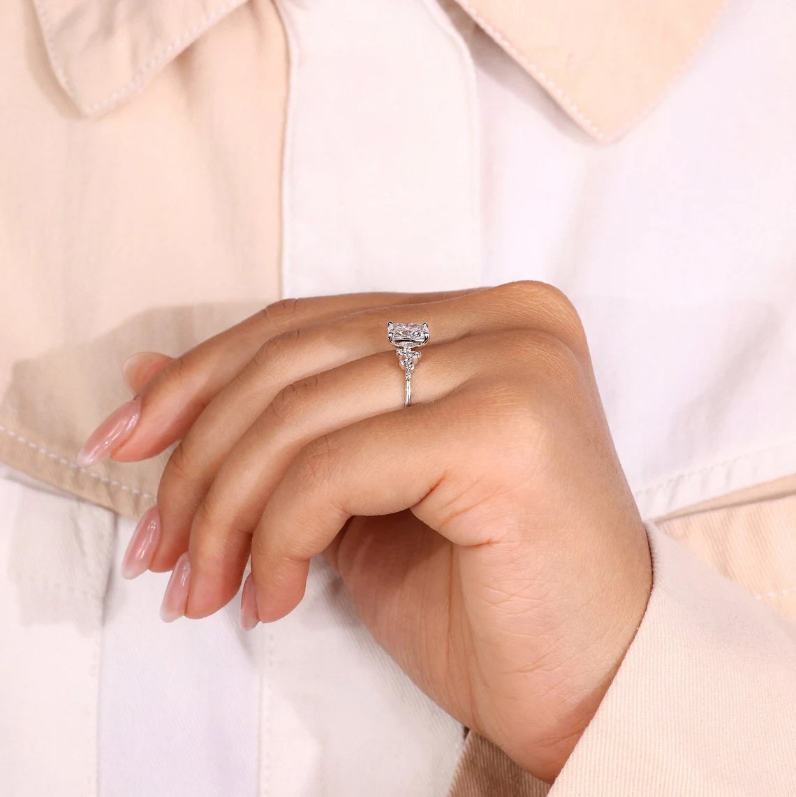 2 CT Elongated Cushion Cut Moissanite Diamond Snowdrift Engagement Ring