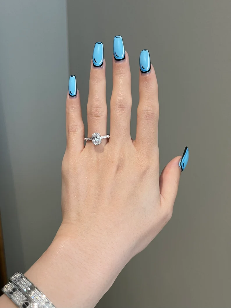 This 2ct brilliant oval cut moissanite engagement ring showcases radiant fire and graceful design—ideal for a classic, elegant, and unforgettable proposal.