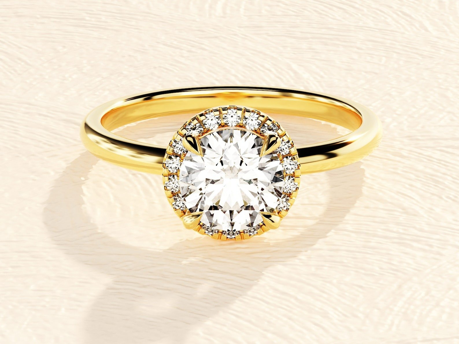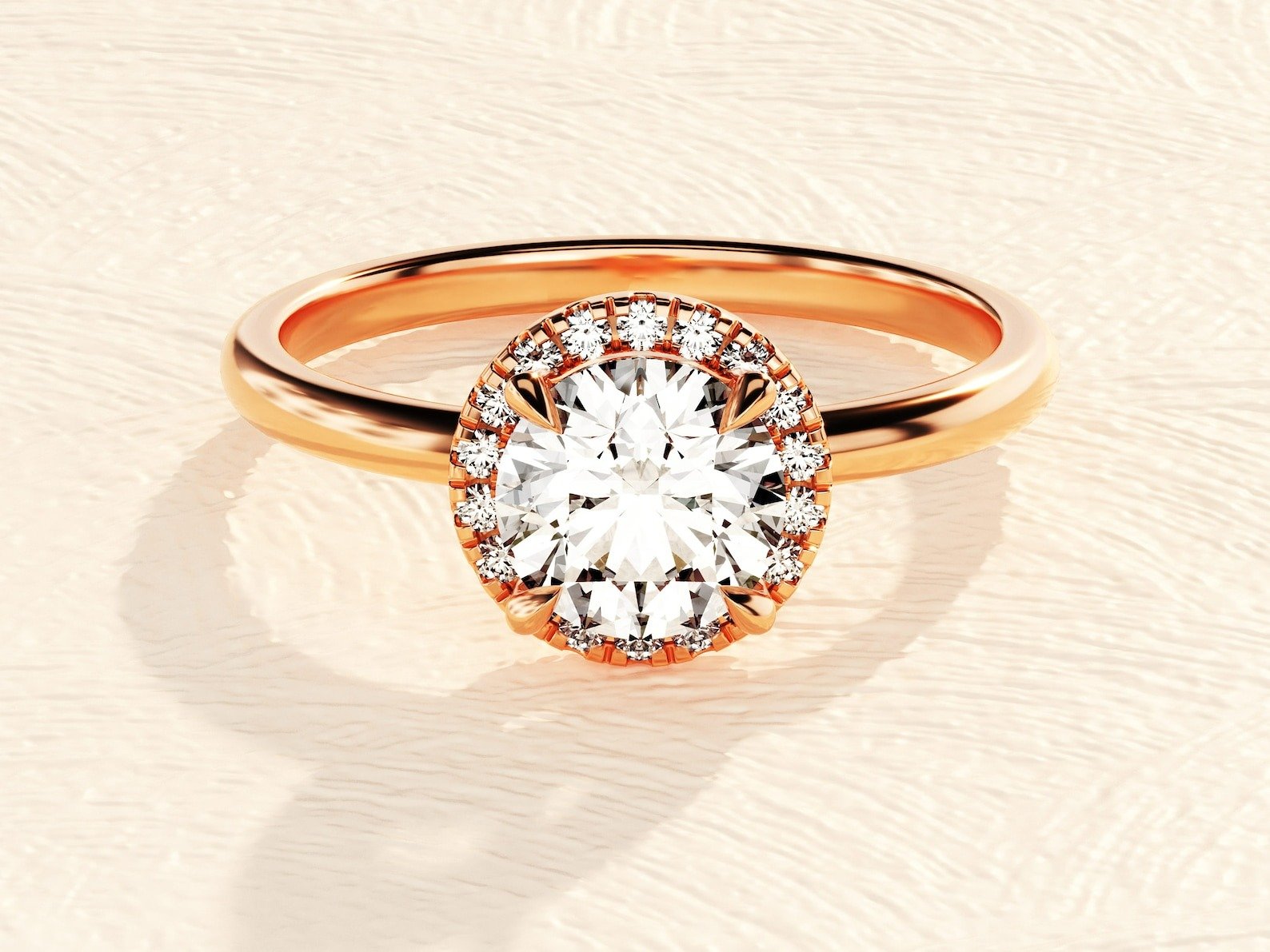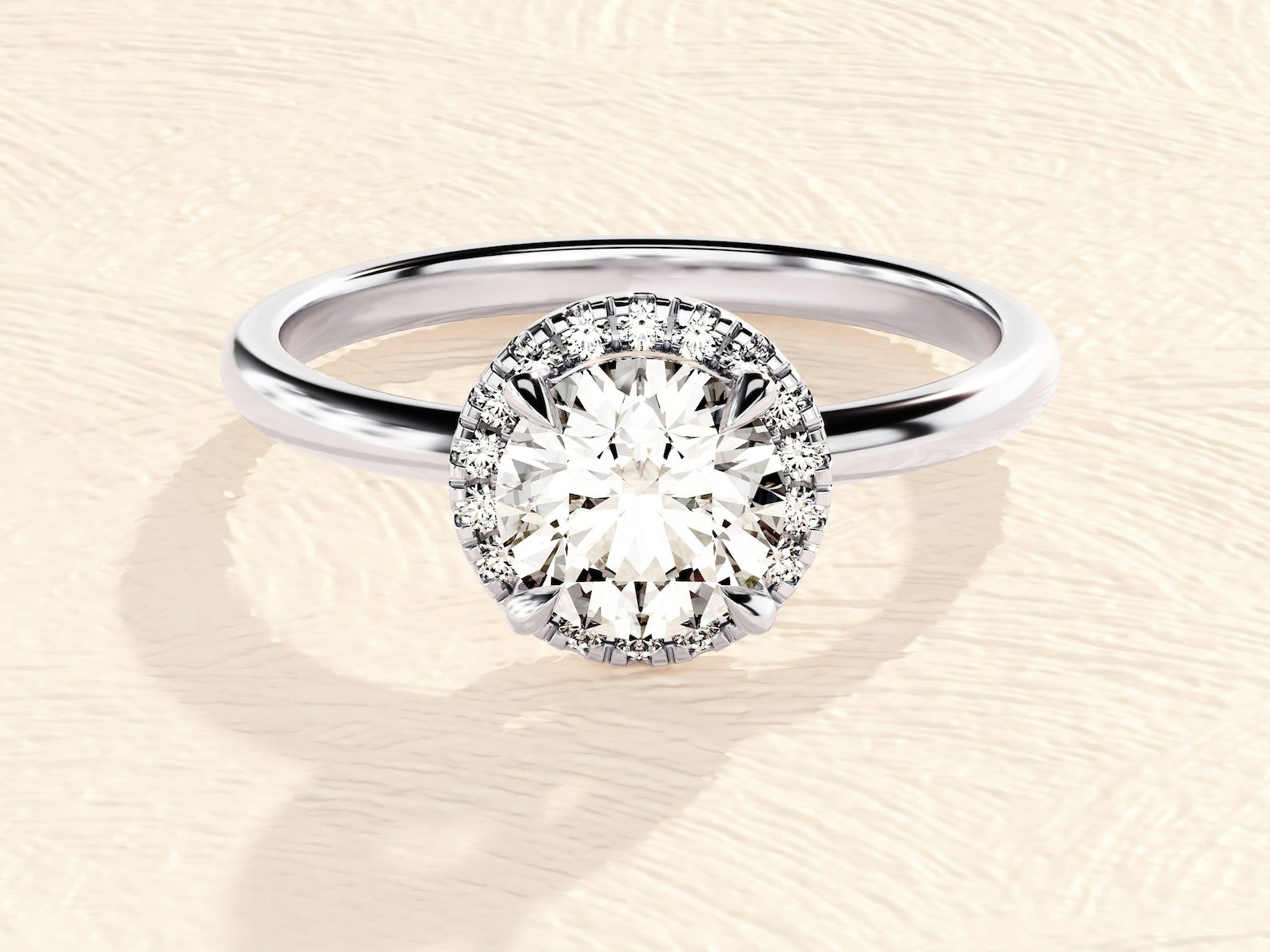 Excellent craftsmanship. The halo setting adds an extra touch of elegance.
