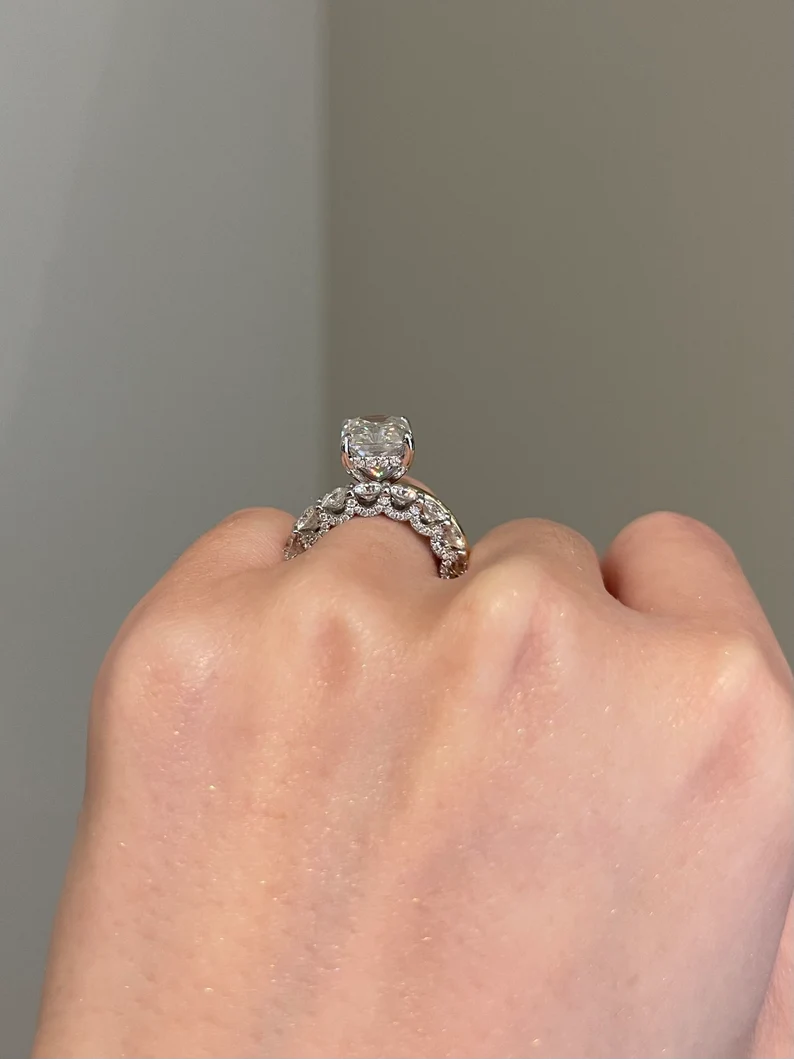 8 Carat Cushion Cut Moissanite Ring Solid Gold