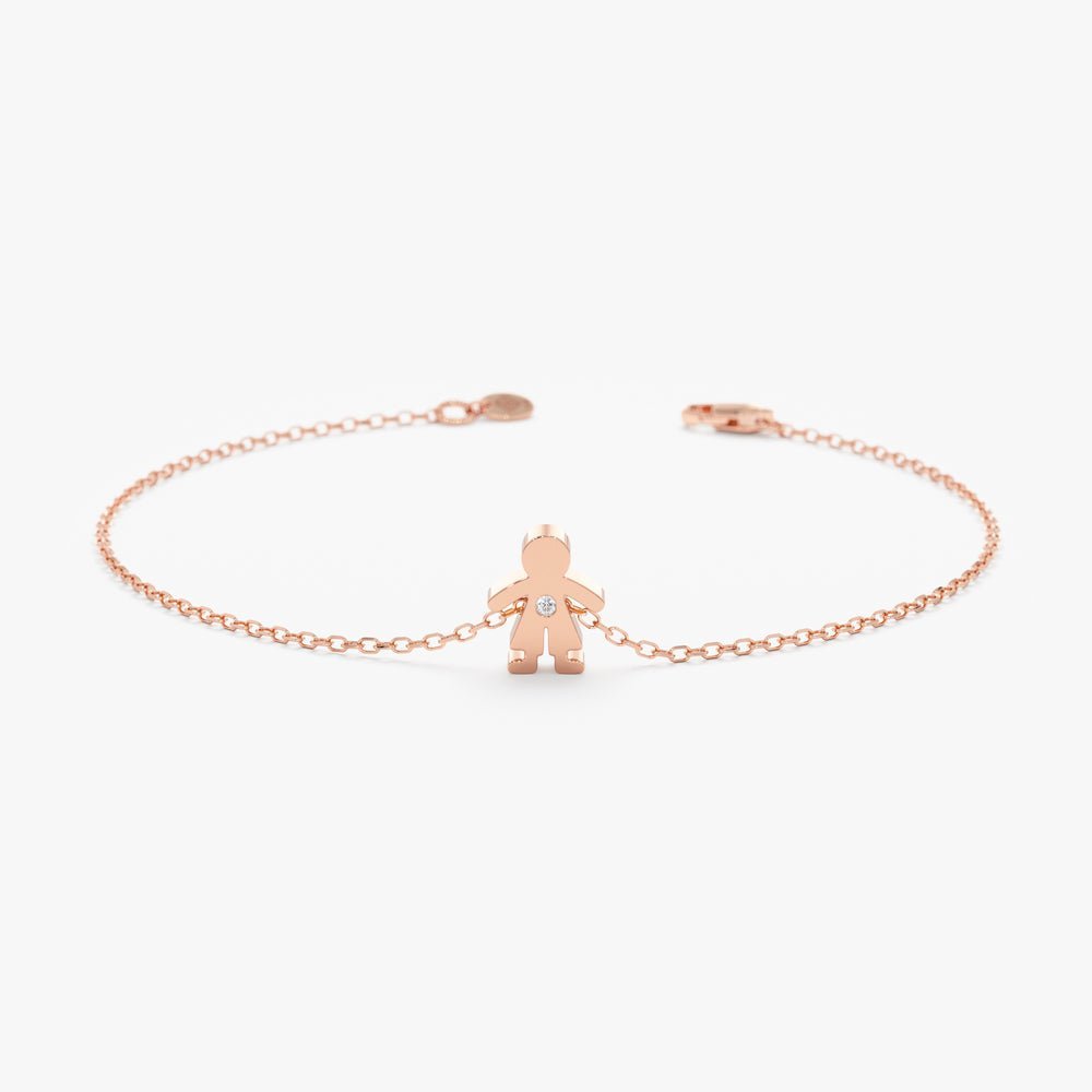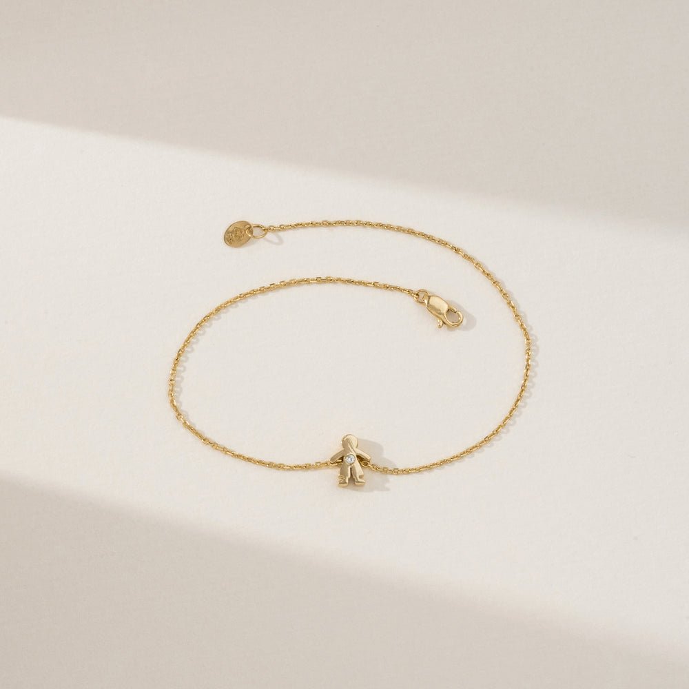 Add whimsy to your style with our Baby Boy Diamond Bracelet. Crafted from 14k solid gold, it features a playful baby boy silhouette with a sparkling diamond accent.