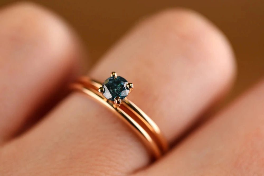 The blue diamond bridal ring set is bold and unique, perfect for those who love colorful engagement rings.